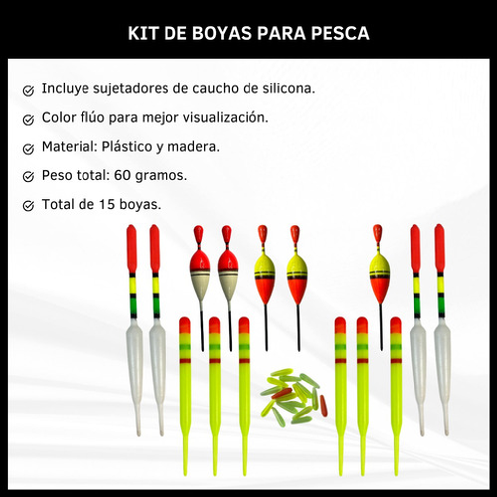 SET DE 15 BOYAS DE PESCA SENSIBLES AL PIQUE