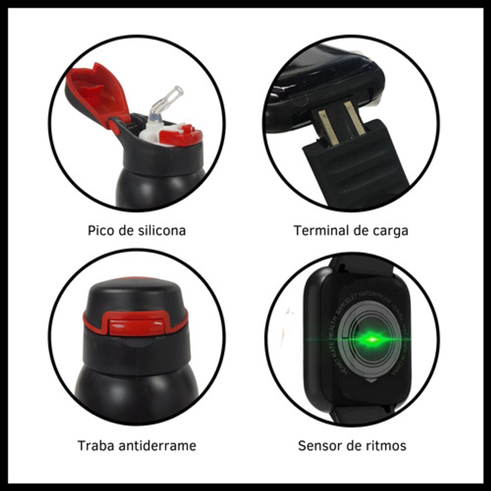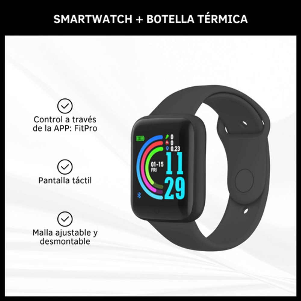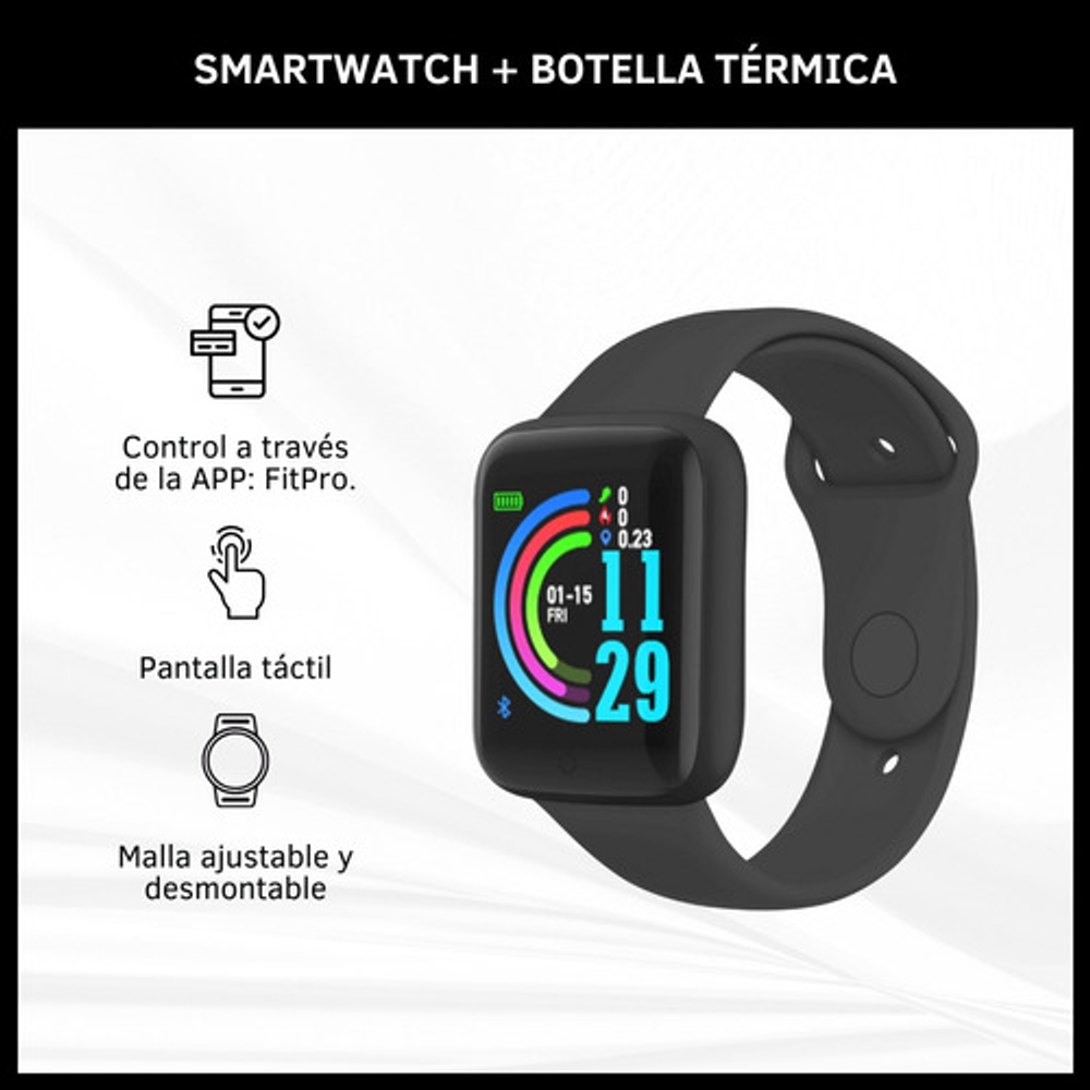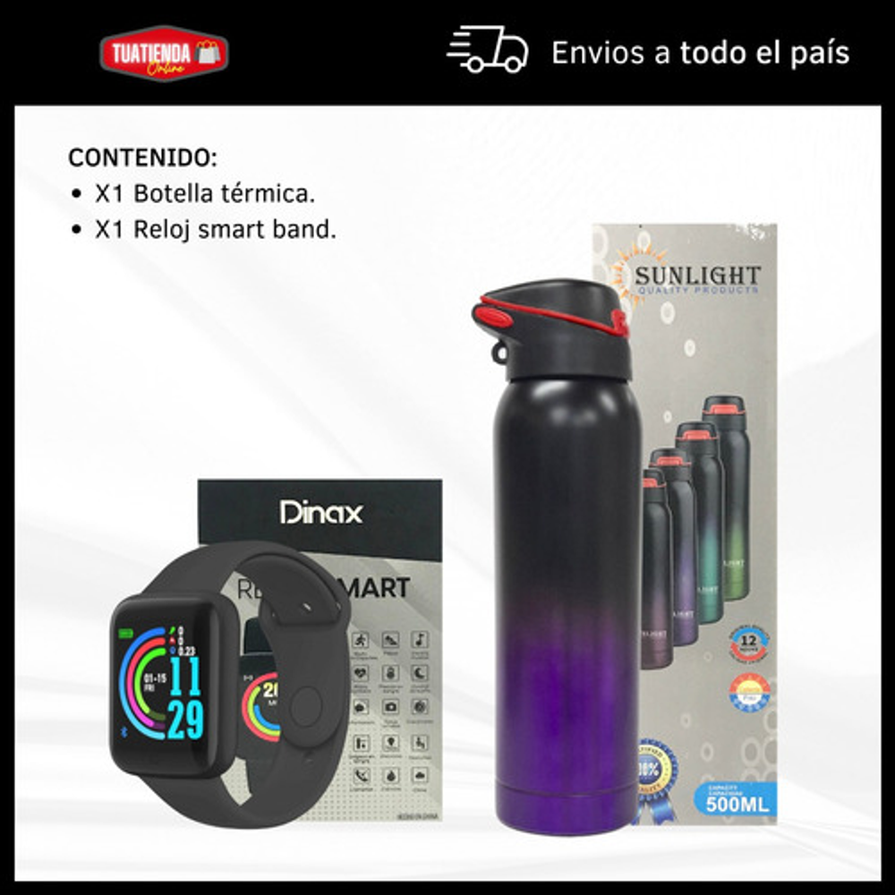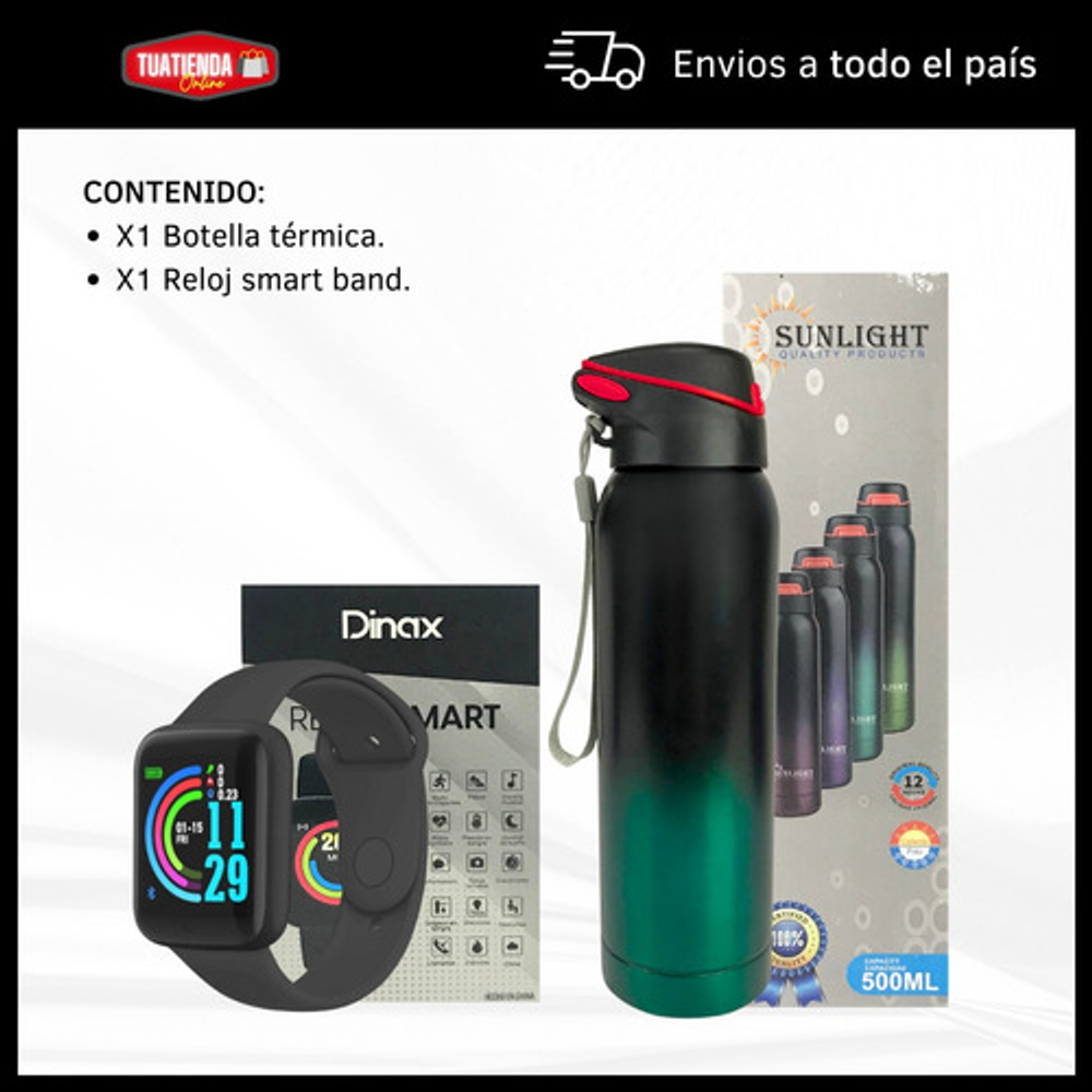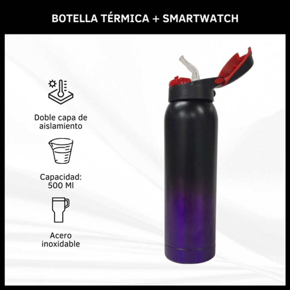 COMBO BOTELLA TÉRMICA DE ACERO INOXIDABLE + SMARTWATCH