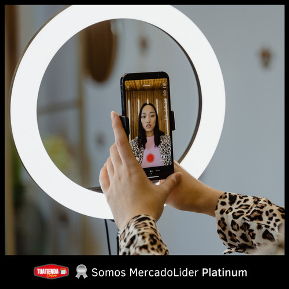 Características: -Diámetro 30 cm. -Colores RGB, blanco cálido y frio. -Ajuste de potencia de la luz. -Soporte para celular flexible. -Trípode -Alimentación USB.