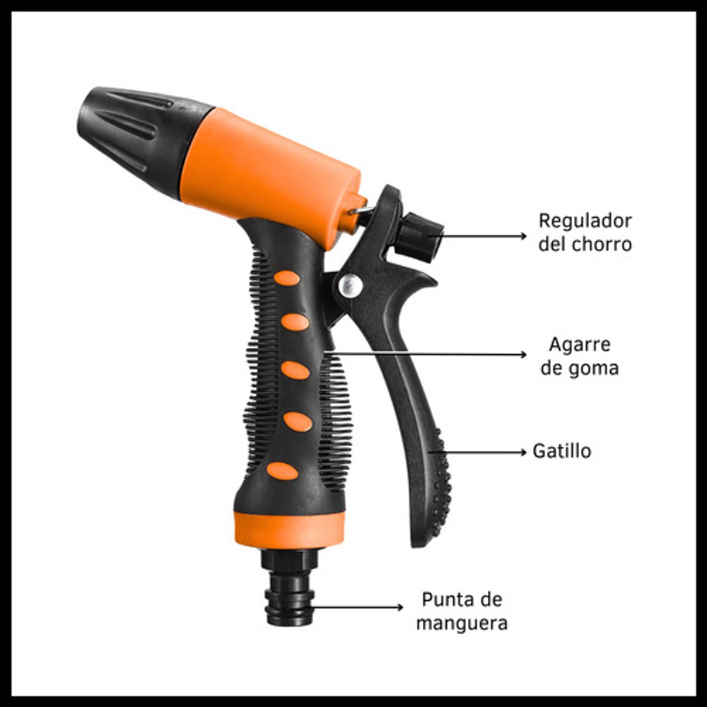 PISTOLA DE RIEGO PARA MANGUERA CON GATILLO Y ACOPLE
