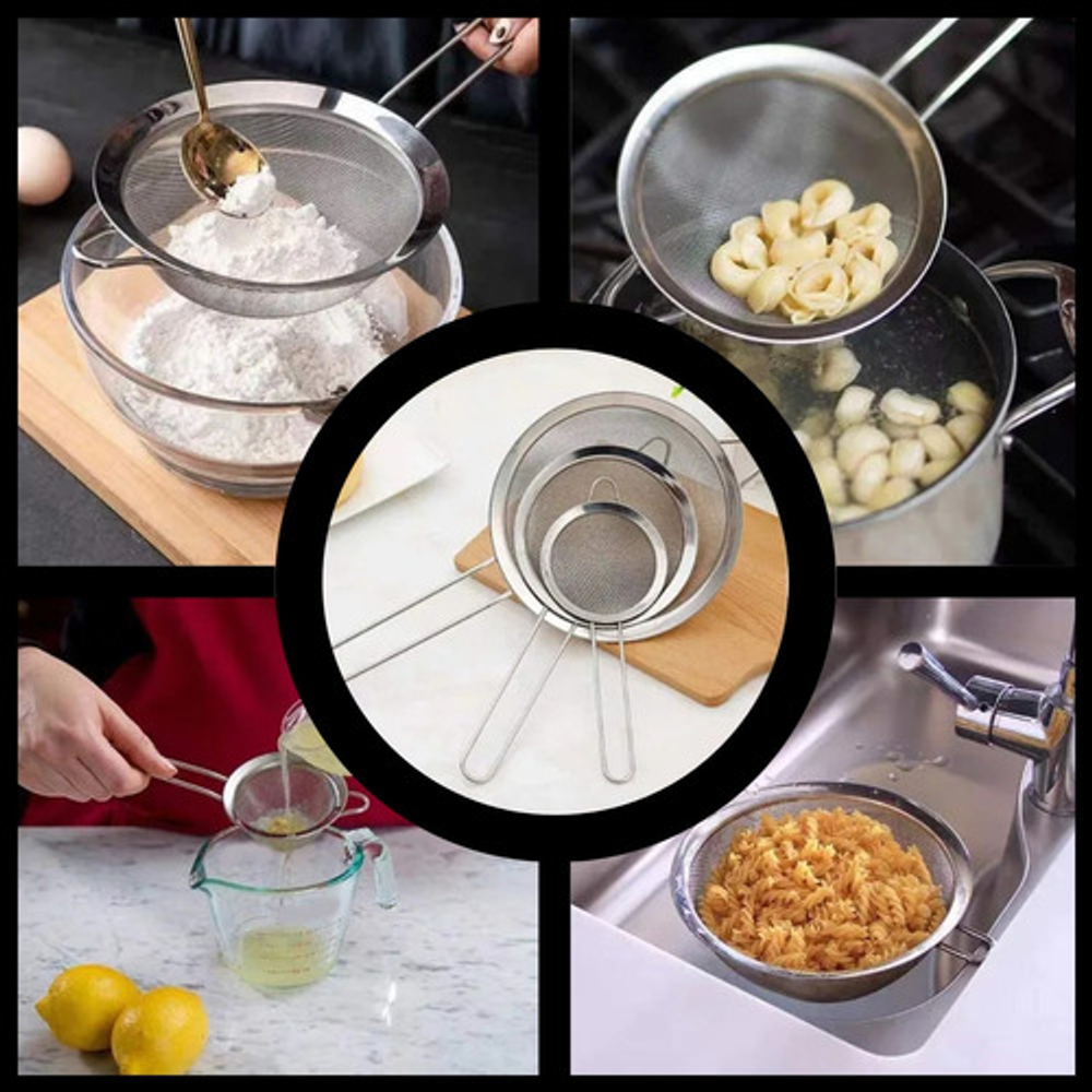 SET X3 COLADORES DE ACERO INOXIDABLE.