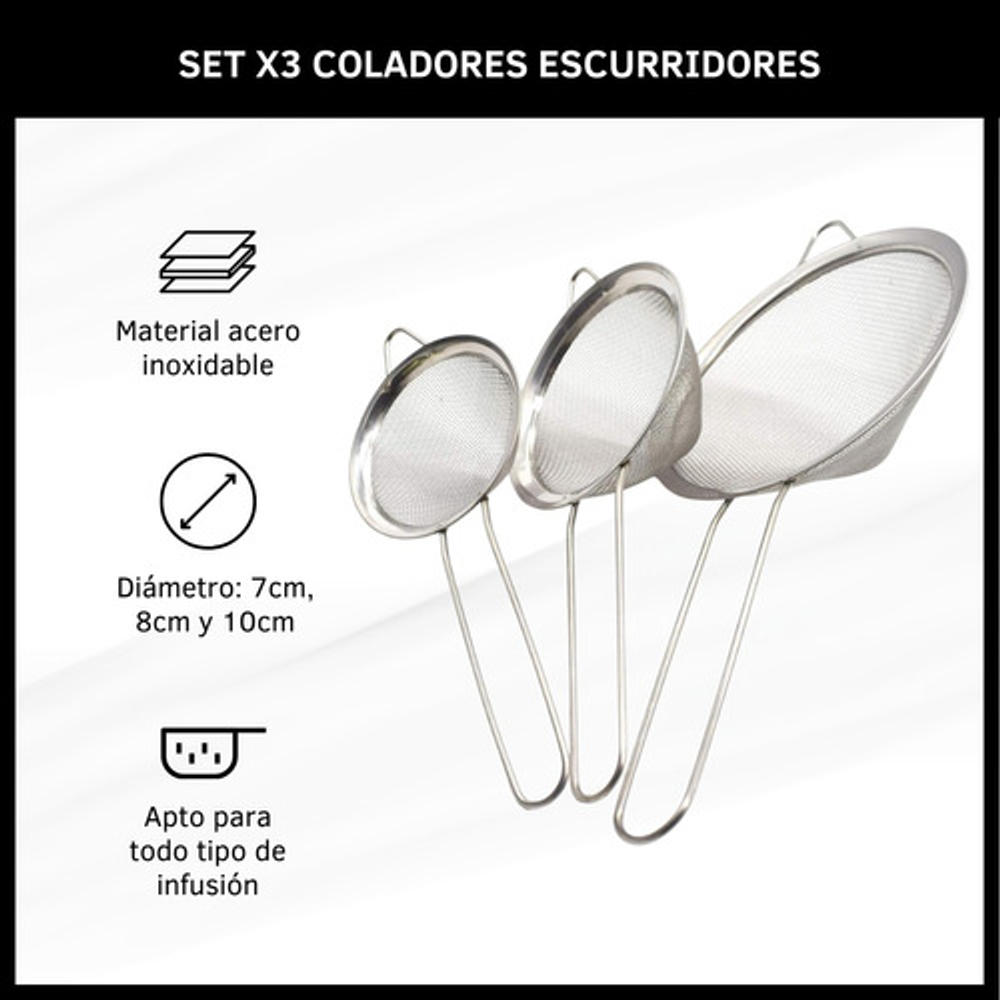 Set x3 coladores: 6cm, 7cm y 8cm.
