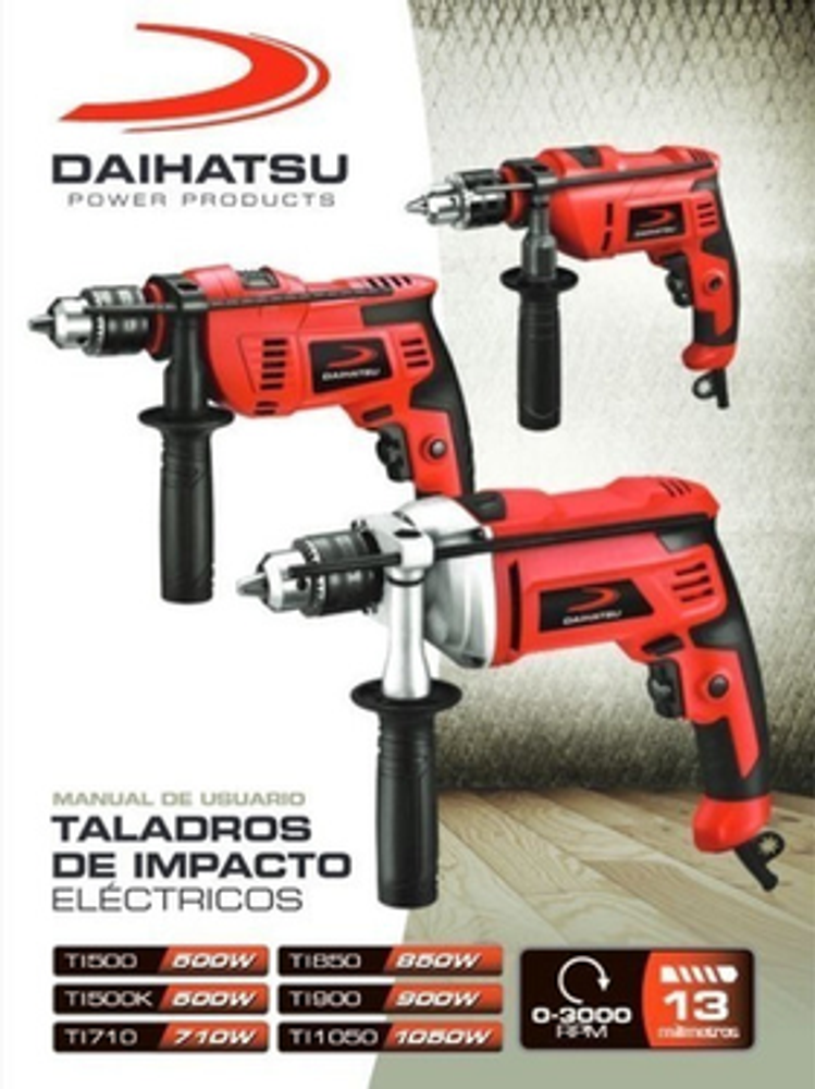 Con el taladro eléctrico Daihatsu TI500 podrás realizar múltiples tareas en diversas superficies de un modo práctico y sencillo. Su potencia de 500 W te ofrecerá gran capacidad de perforación.