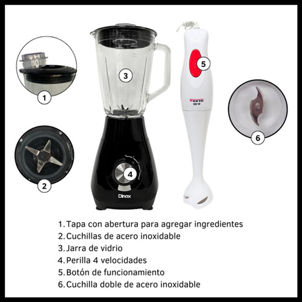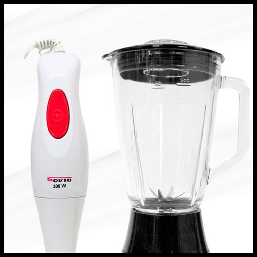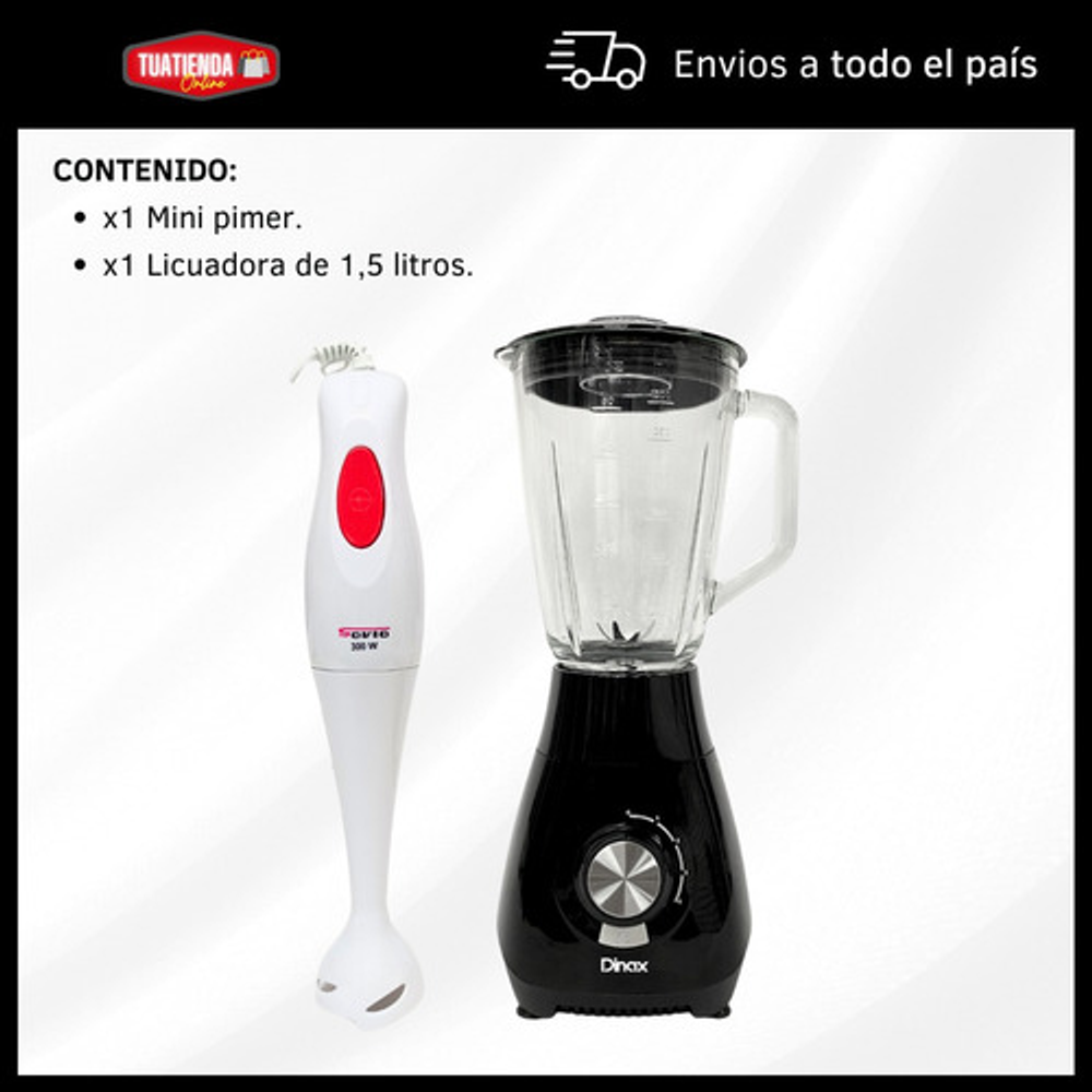 COMBO MINIPIMER MIXER DOS VELOCIDADES + LICUADORA DE 1.5L 4 VELOCIDADES