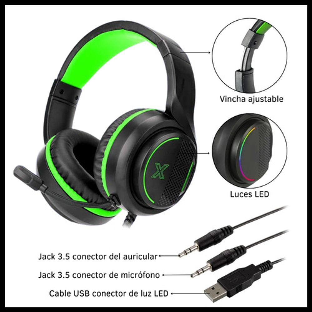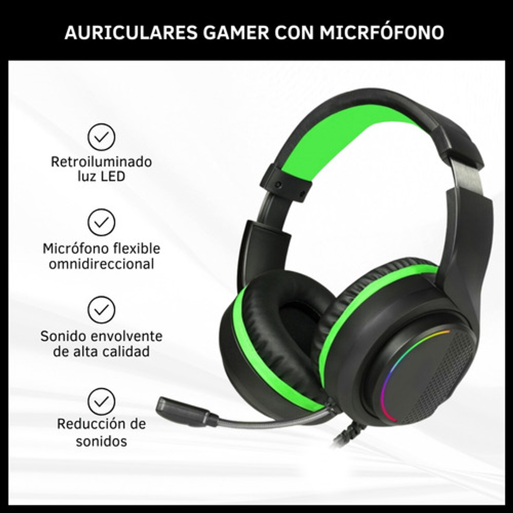 AURICULAR GAMER CON MICRÓFONO Y VINCHA REGULABLE
