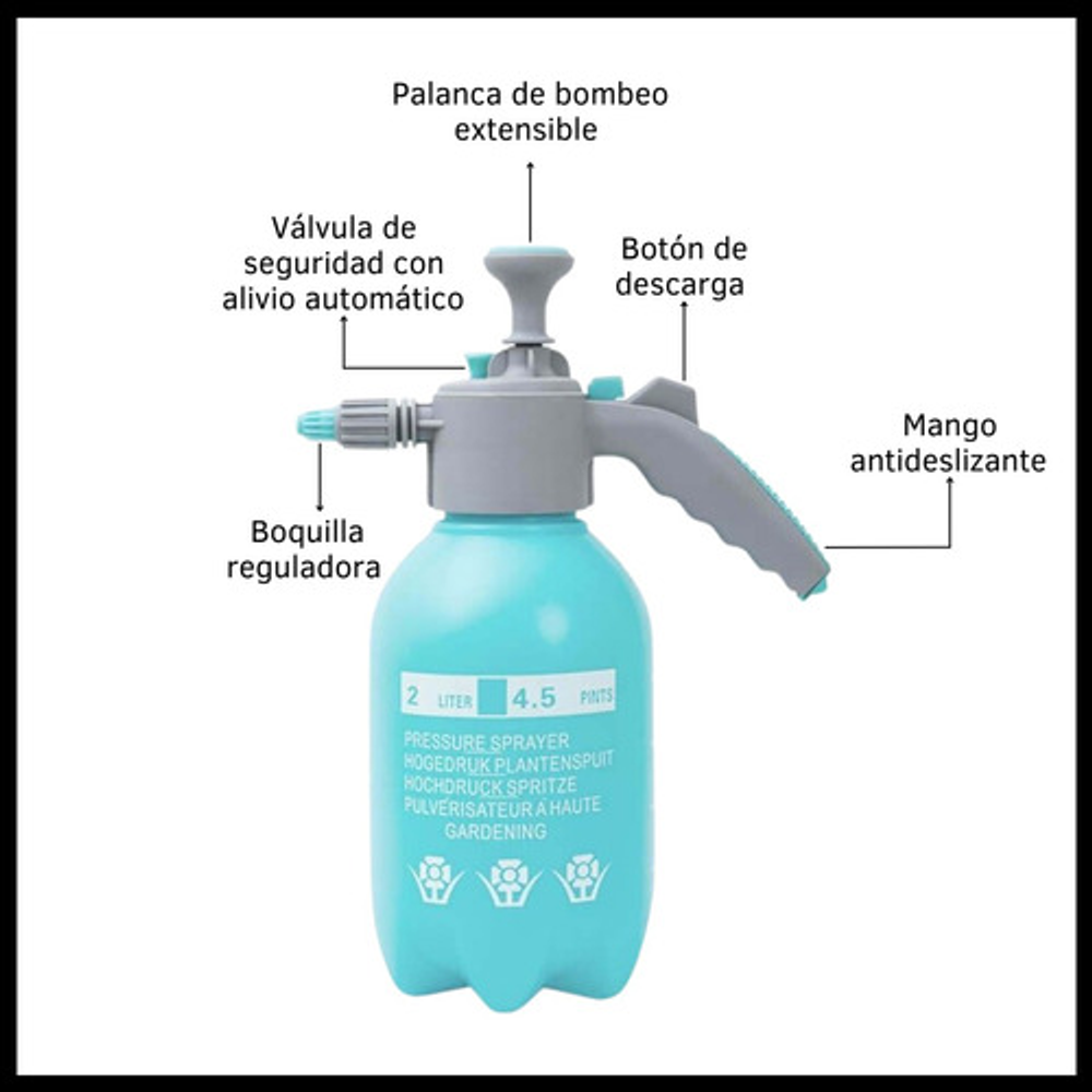 PULVERIZADOR, ROCIADOR Y FUMIGADOR MANUAL A PRESION 2 LITROS