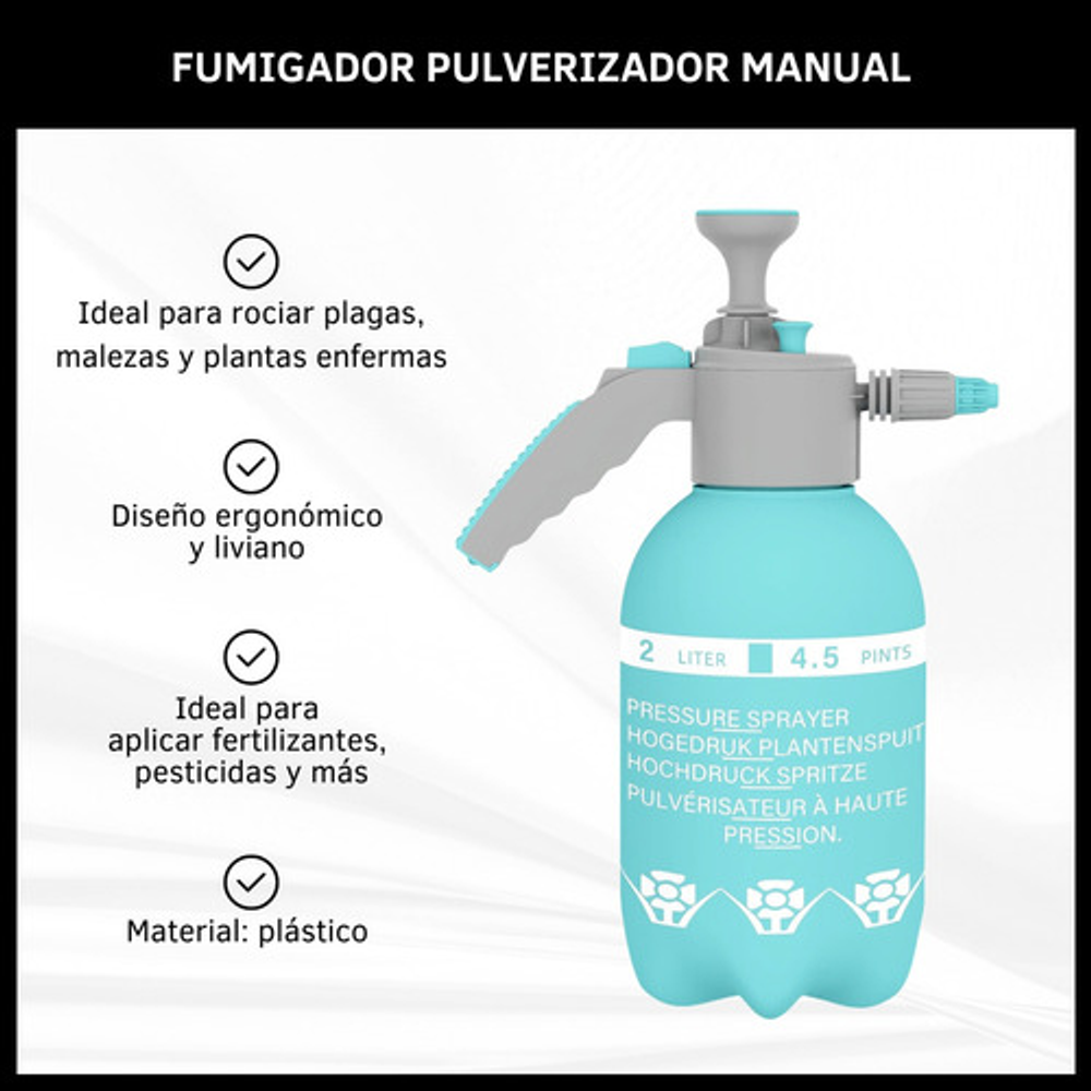 Ideal para rociar plagas, malezas y plantas enfermas.