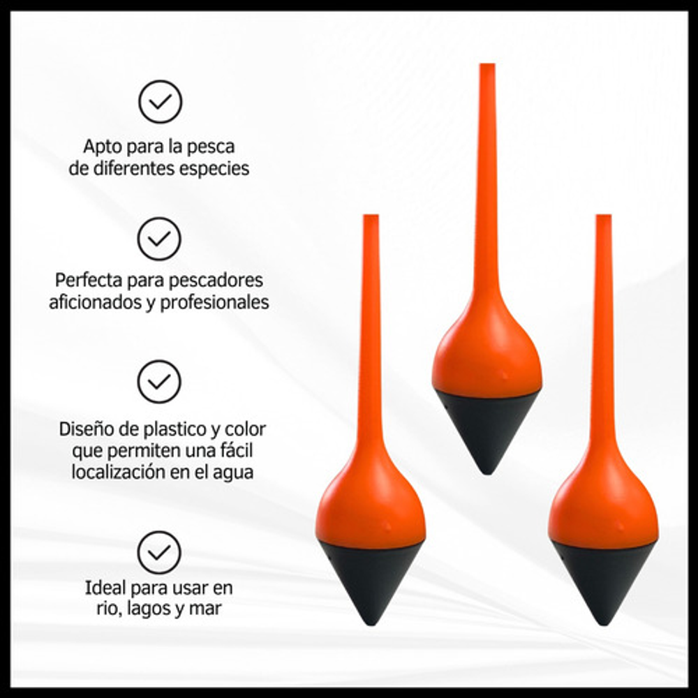 Diseño de plástico y color que permiten una fácil localización en el agua.