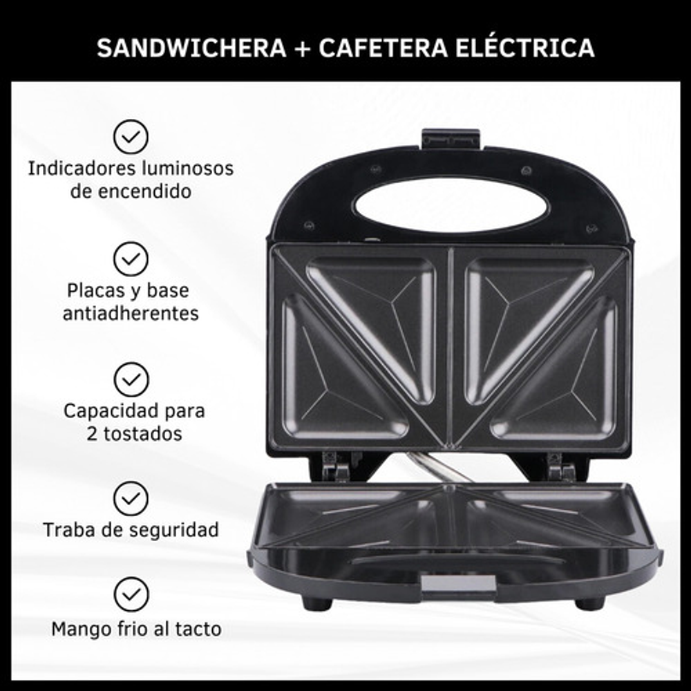 COMBO CAFETERA ELÉCTRICA SEMI AUTOMÁTICA + SANDWICHERA ANTIADHERENTE