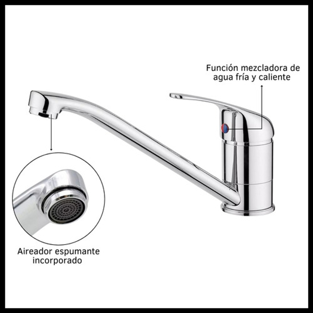 Aireador incorporado para reducir consumo y salpicaduras.