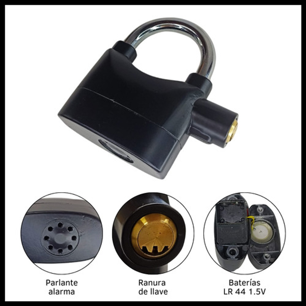 CANDADO DE SEGURIDAD CON ALARMA PARA MOTOS, BICICLETAS, REJAS, PUERTAS.