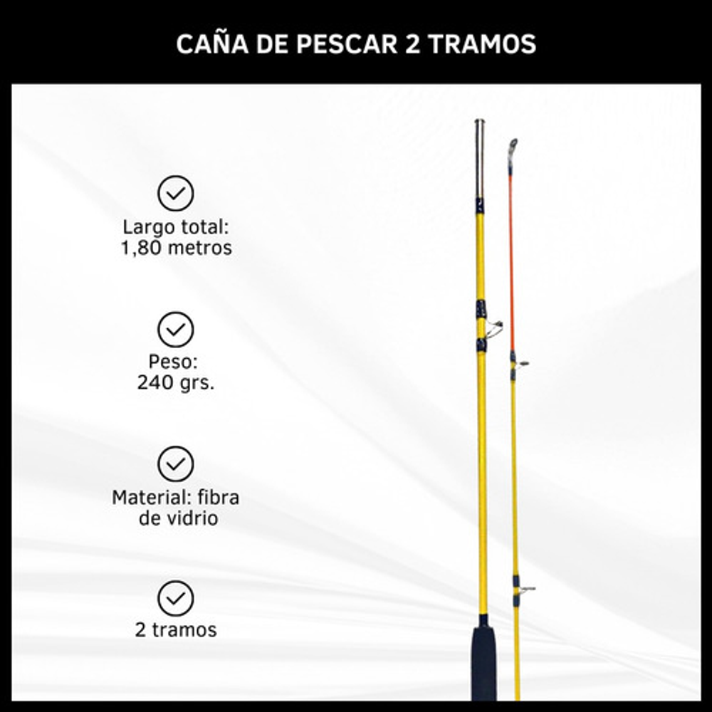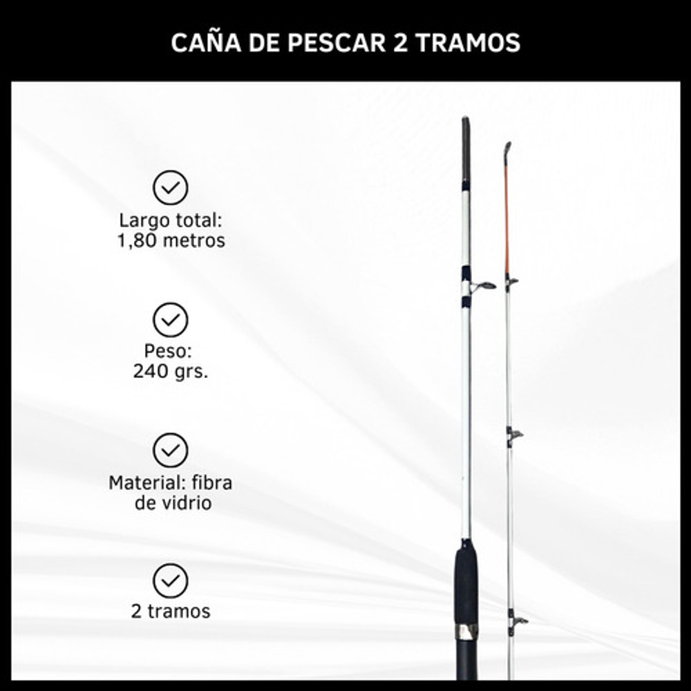 CAÑA DE PESCAR 2 TRAMOS FIBRA DE VIDRIO CON 5 PASAHILOS