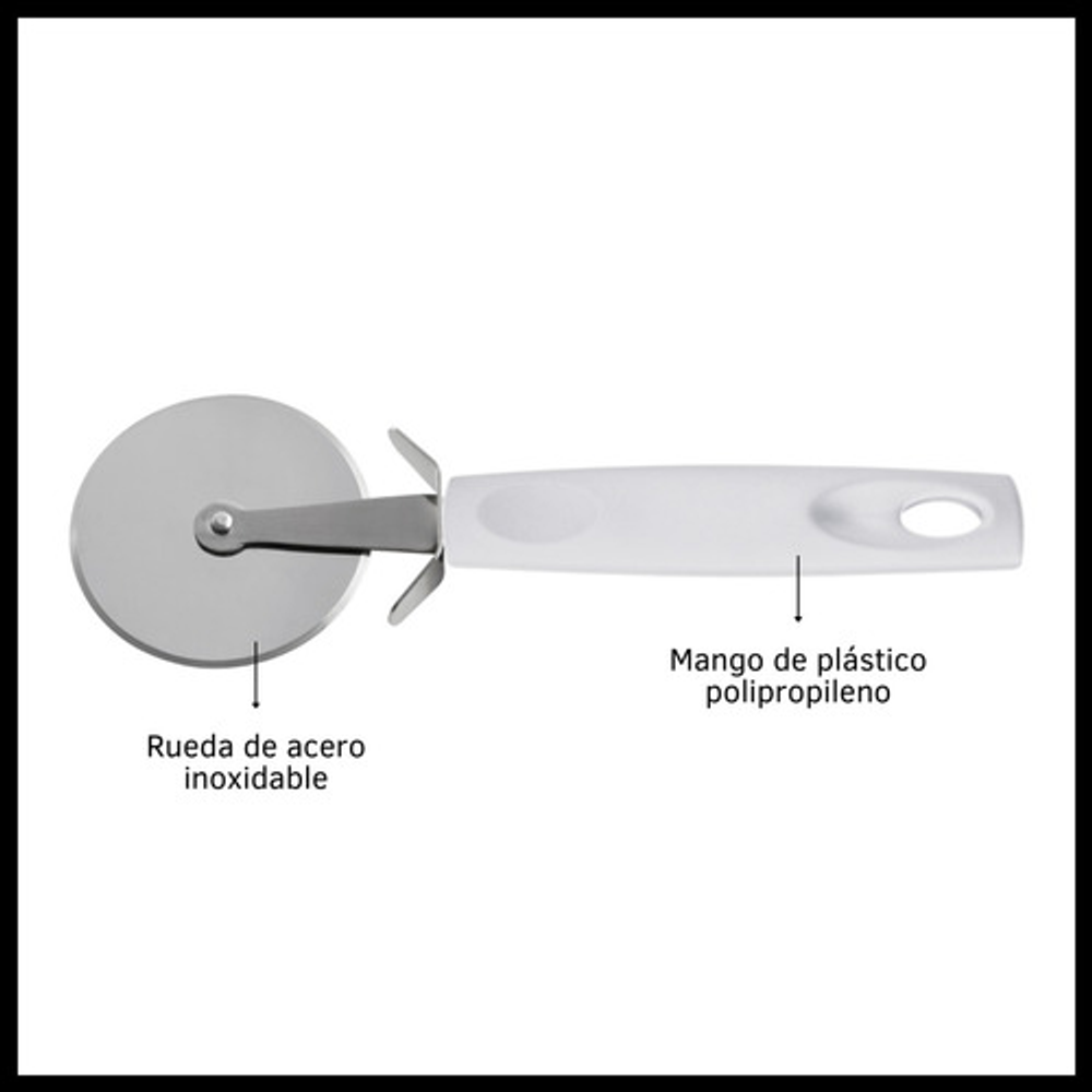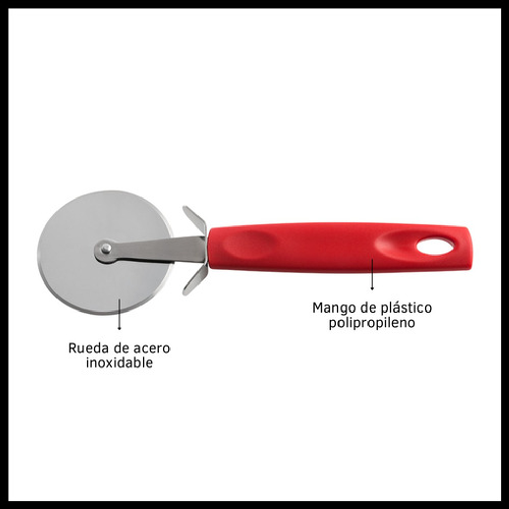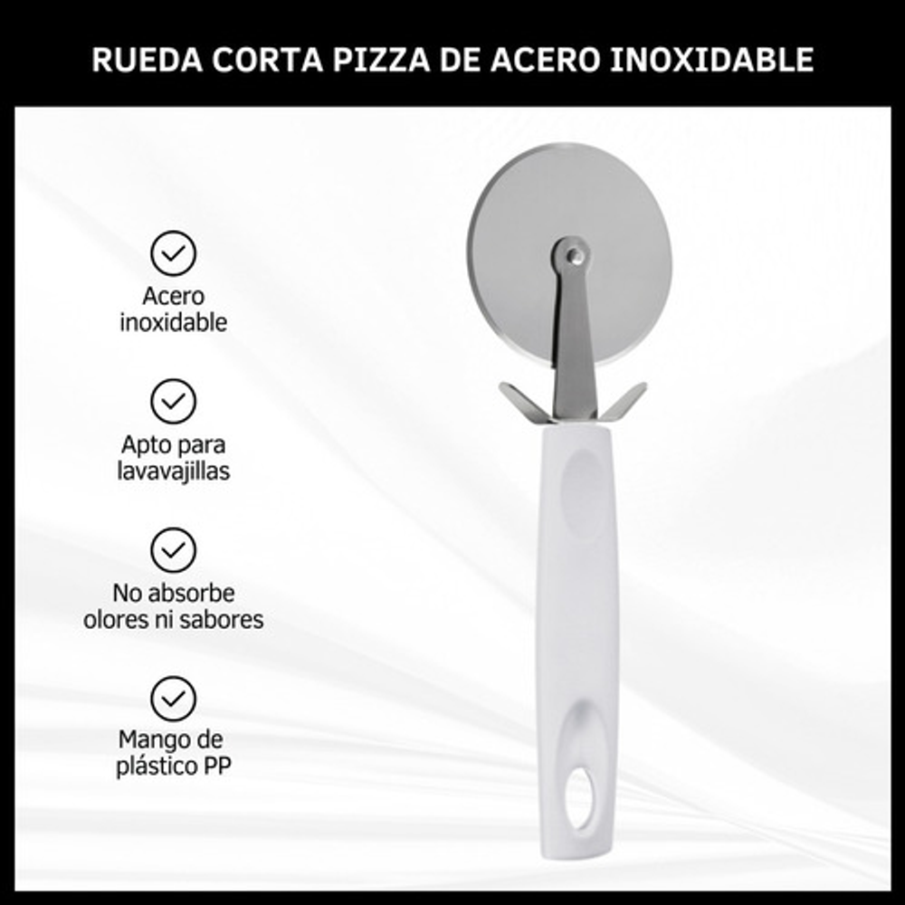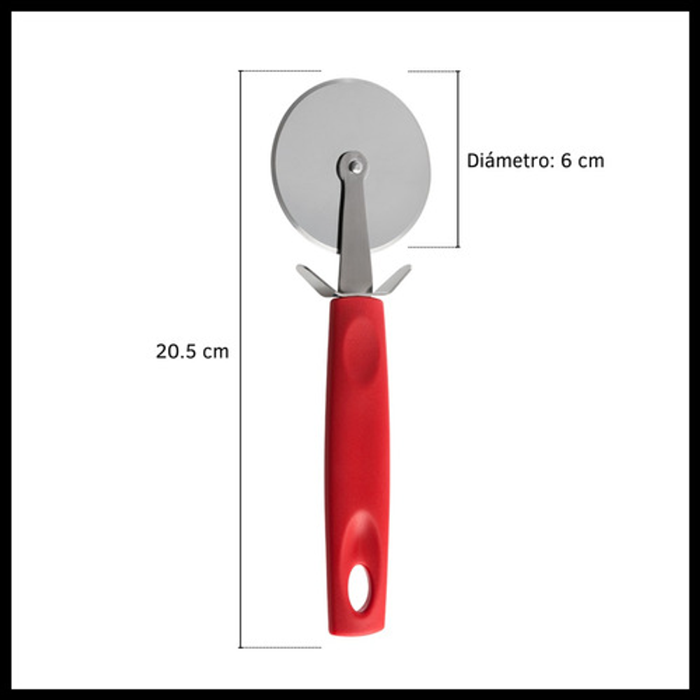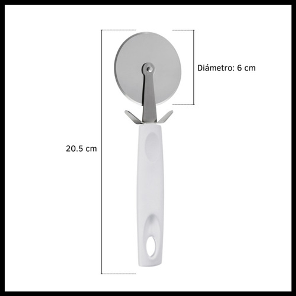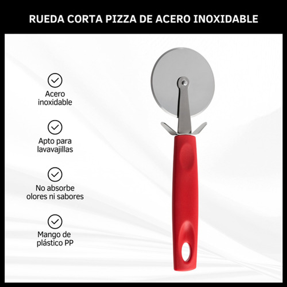 Características: • Largo 20 cm. • Mango de polipropileno. • Material de la rueda: acero inoxidable. • No absorbe olores ni sabores. • Apto para lavavajillas. • Soporta 230 grados.