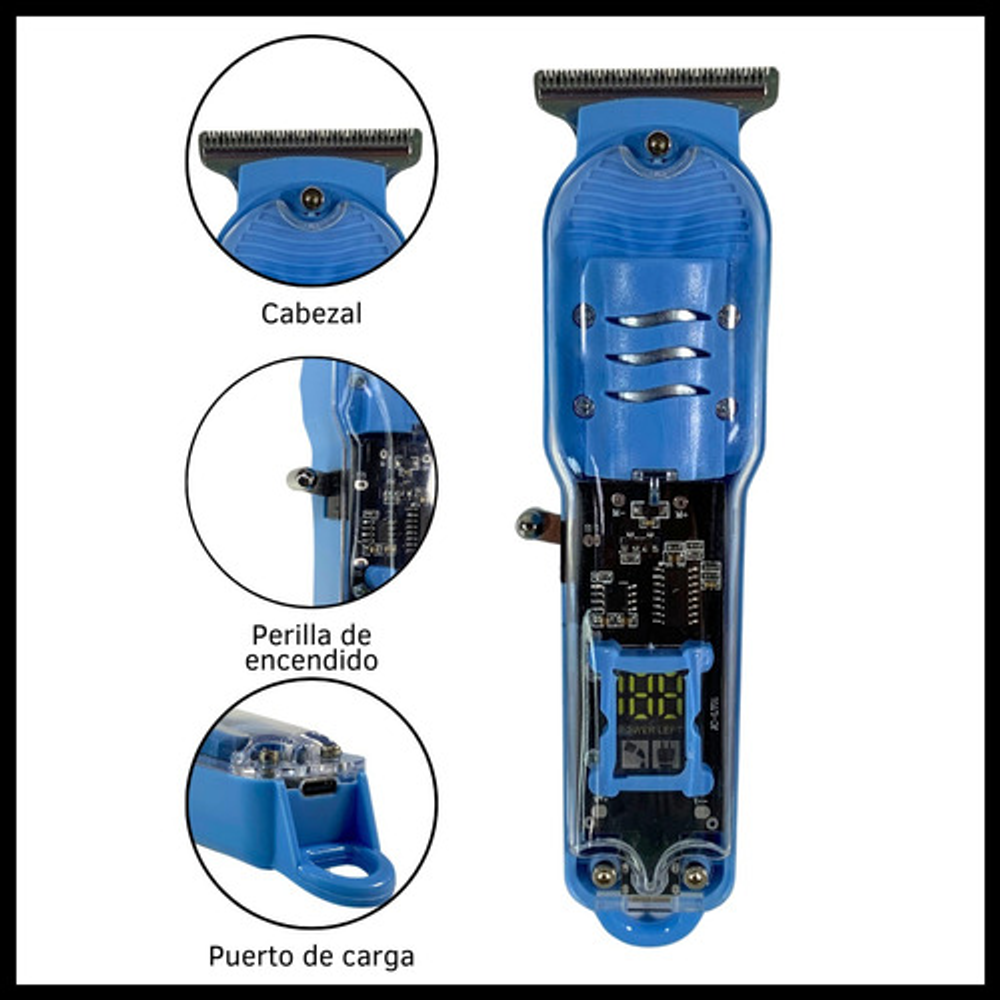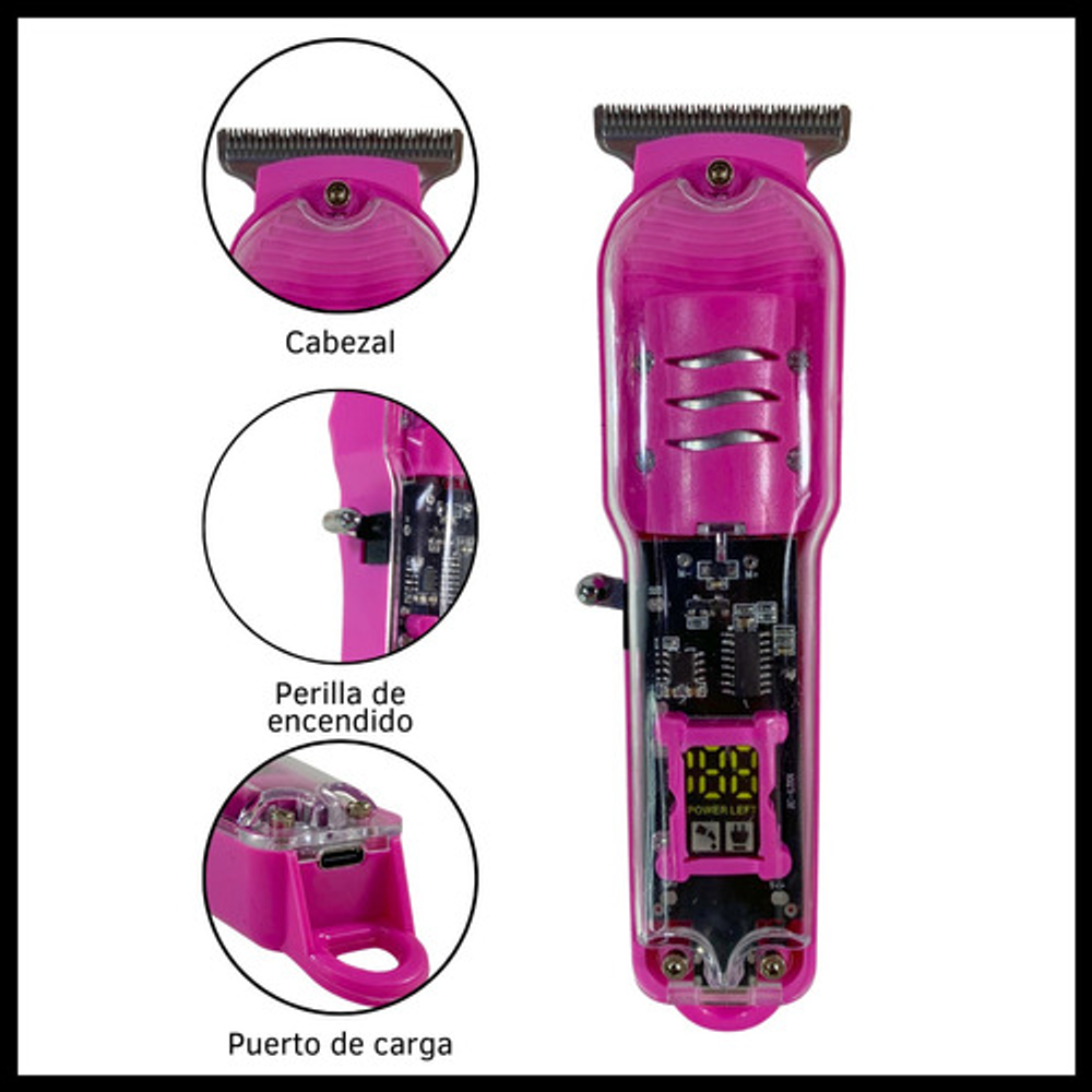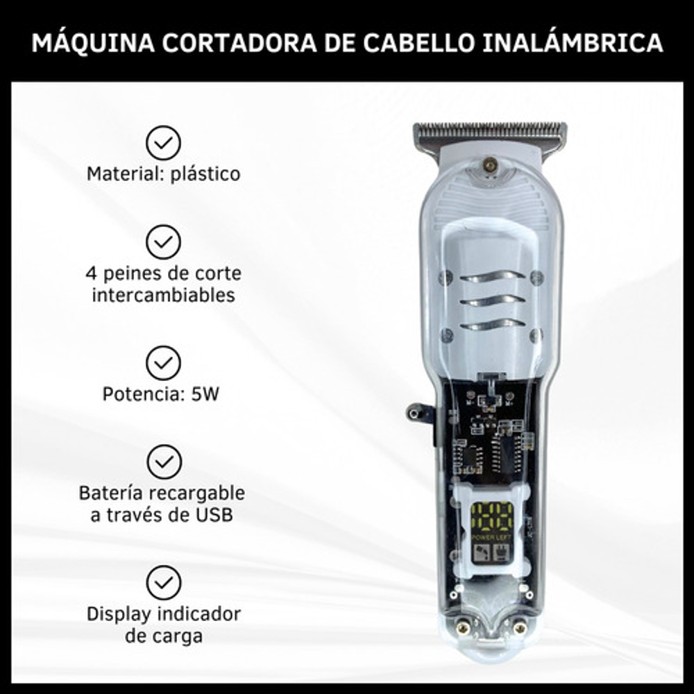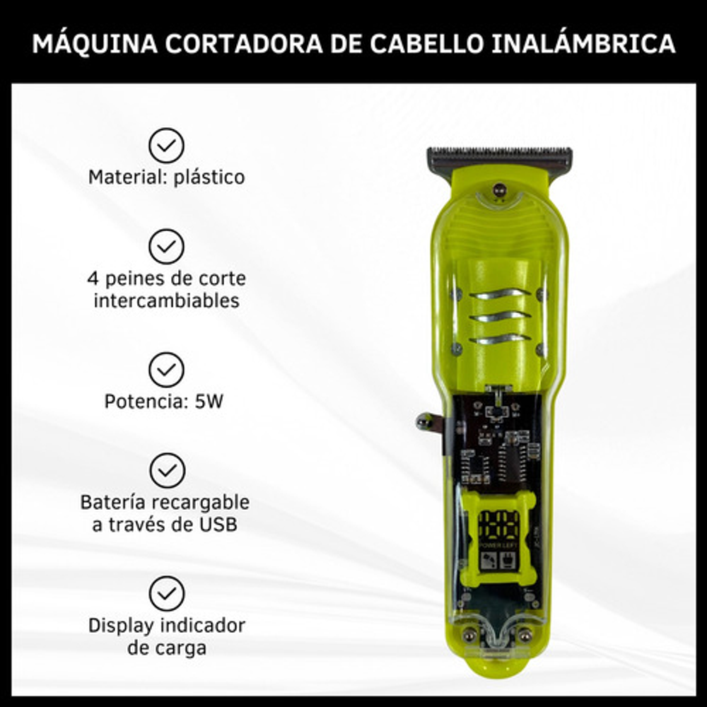 MÁQUINA DE CORTAR PELO INALÁMBRICA CON VISTA DE CARGA