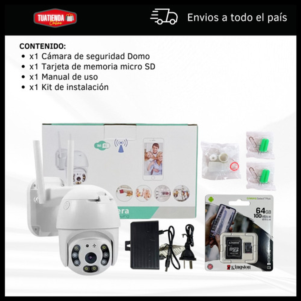 CAMARA DE SEGURIDAD DOMO IP66 WIFI + TARJETA DE MEMORIA MICRO SD 64GB CANVAS SELECT PLUS CON ADAPTADOR