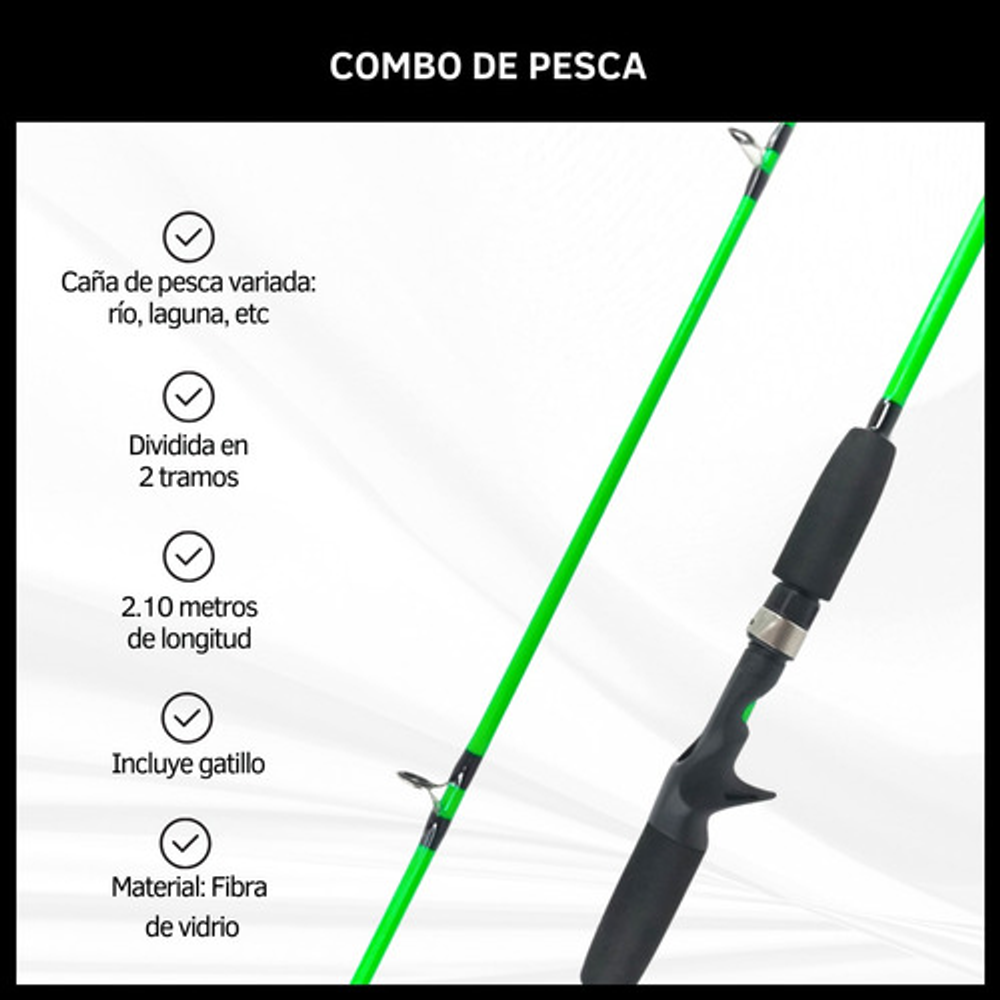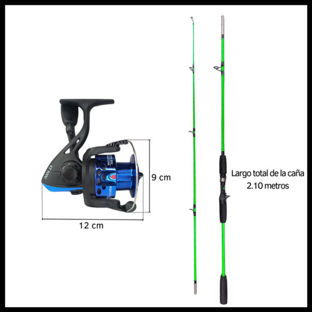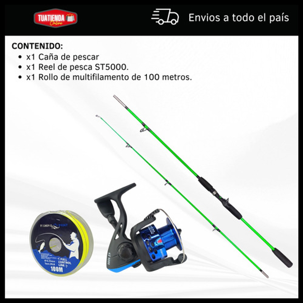 CAÑA DE PESCAR MACIZA 2 TRAMOS + REEL + MULTIFILAMENTO.