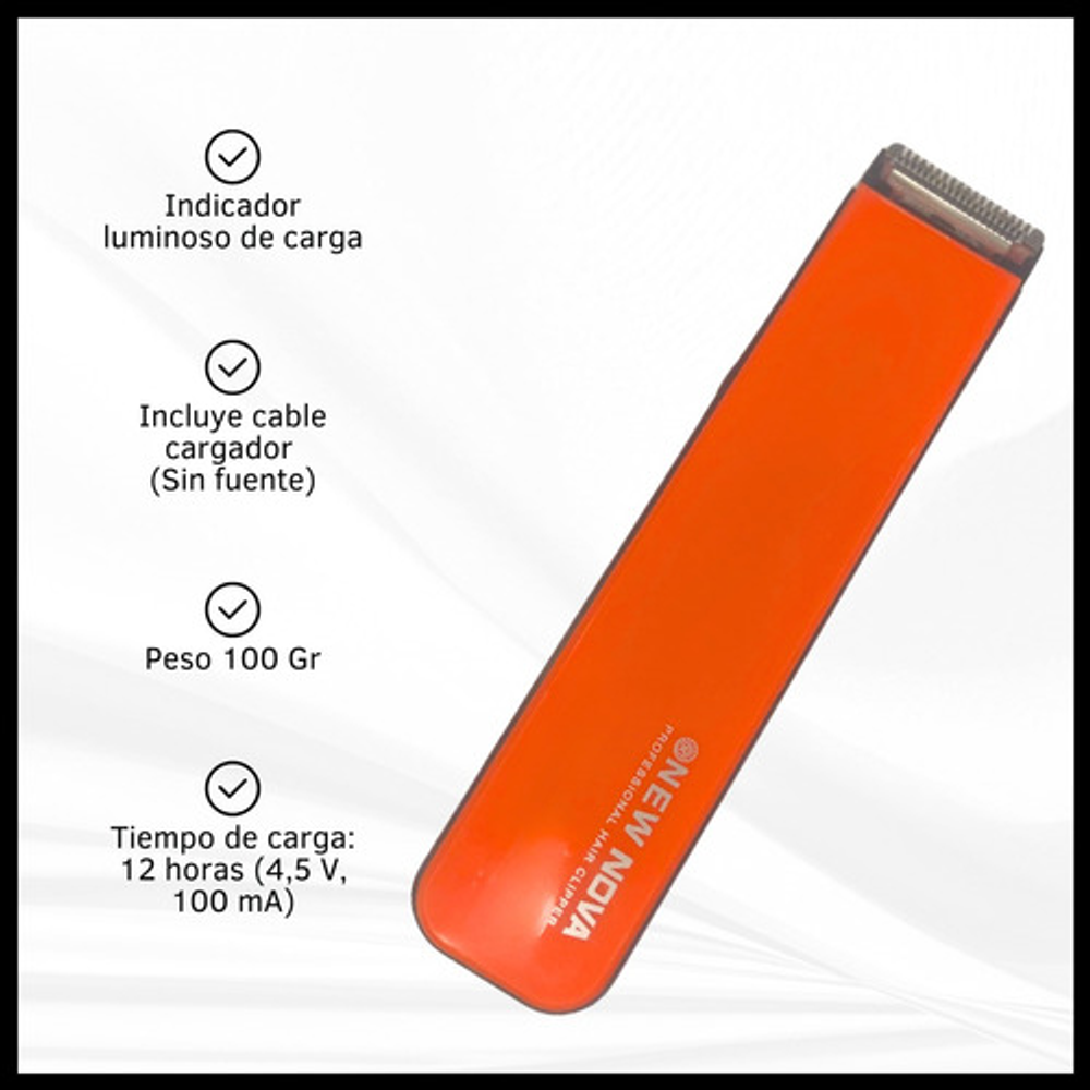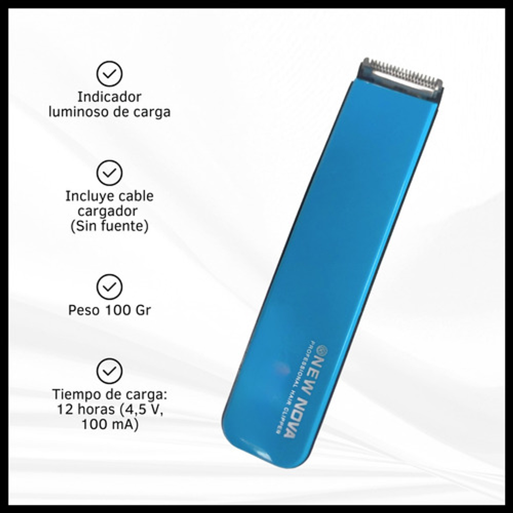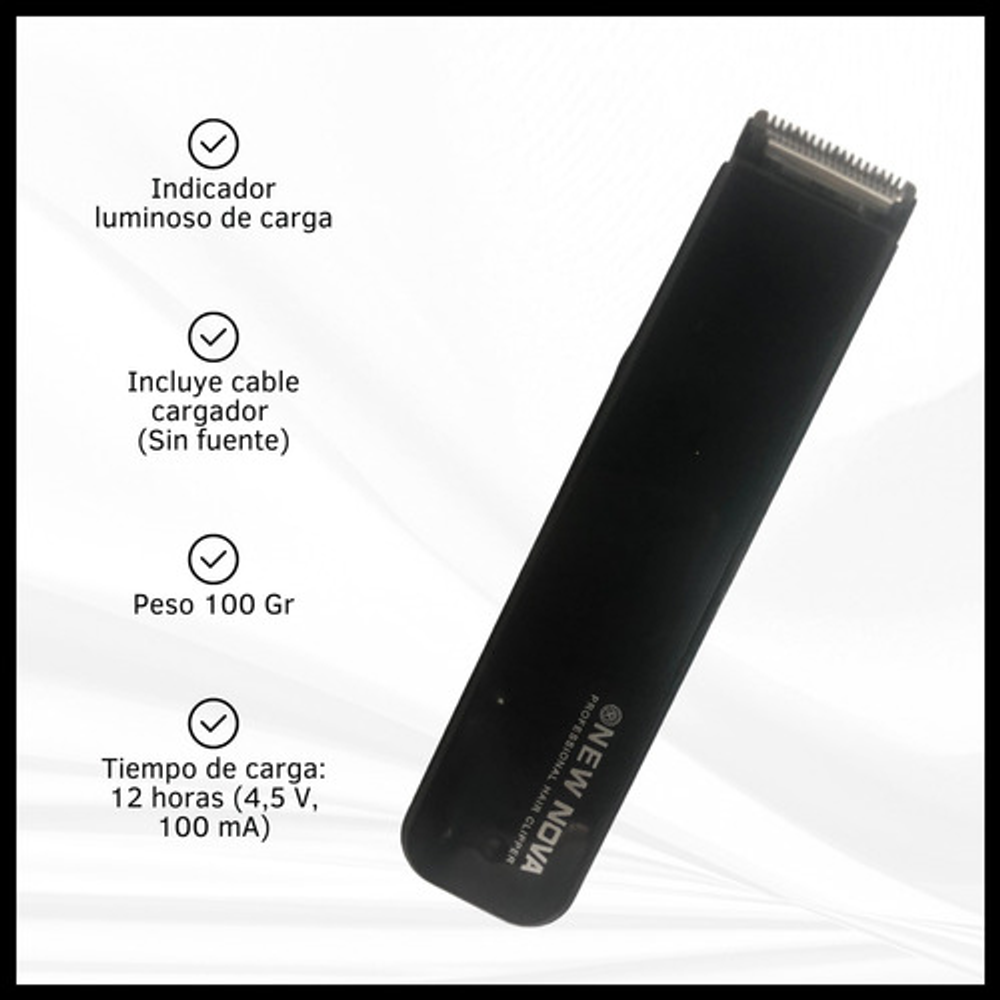 Características: • Tiempo de carga: 12 horas (4,5 V, 100 mA). • Incluye cable cargador (Sin fuente). • Velocidad de rotación de 8000 rpm. • Indicador luminoso de carga. • Cuchilla de acero inoxidable. • Tiempo de uso: 45 minutos. • Batería recargable a través de un cable USB. • Peso: 100 gramos. • Cabezal ultra fino.
