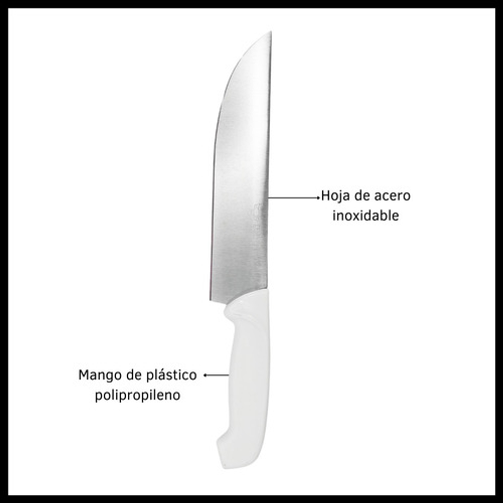 Características: • Lamina de acero inoxidable. • Espesor de la hoja: 2mm. • Mango de polipropileno antibacteriano. • Pulgadas: 9''