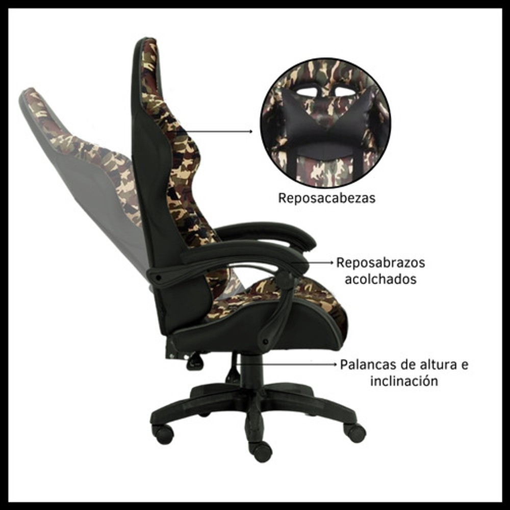 SILLA GAMER DE ESCRITORIO RECLINABLE ERGÓNOMICA