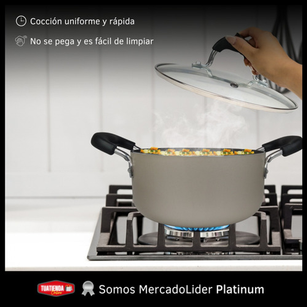 OLLA CACEROLA DE PRO-FLON ANTIADHERENTE CON TAPA DE VIDRIO
