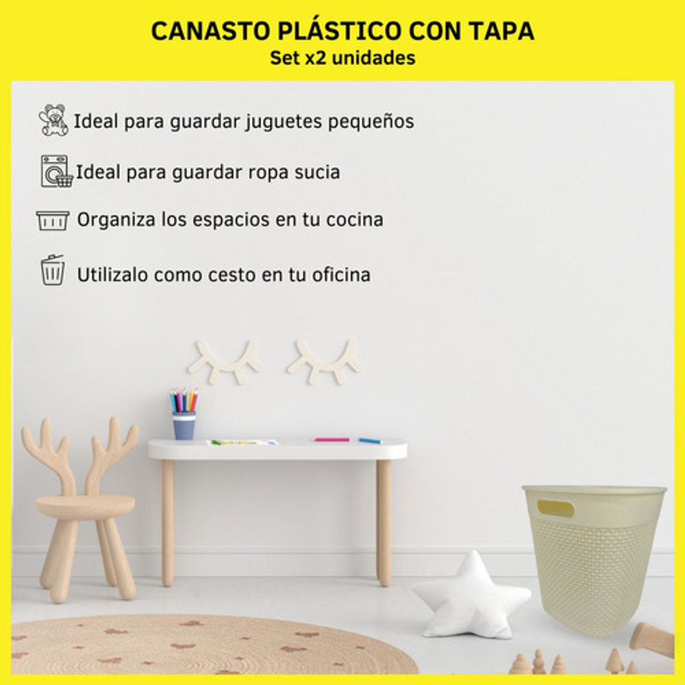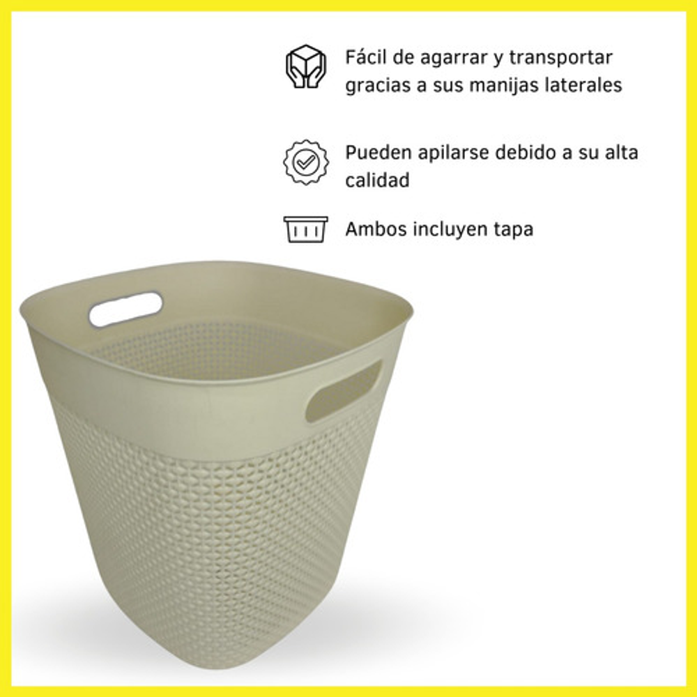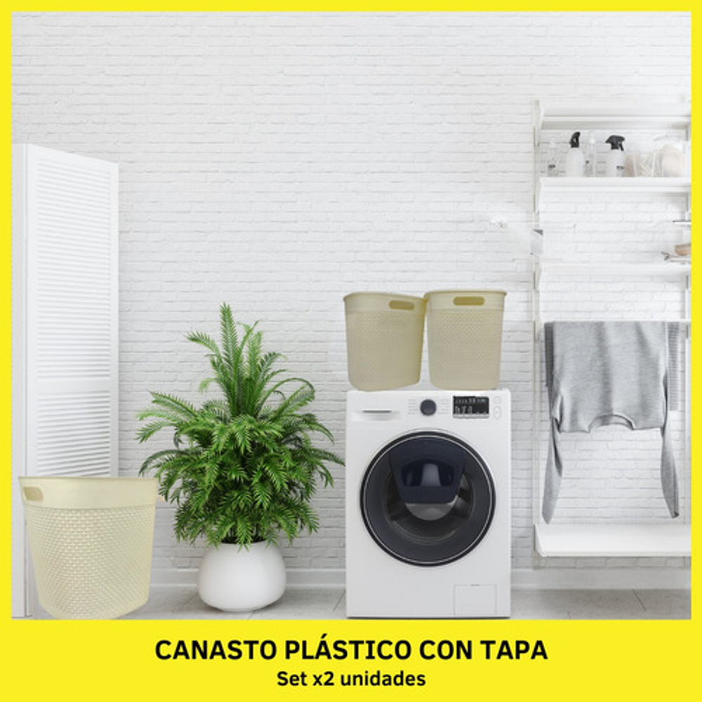 CANASTO PLÁSTICO CON TAPA POR DOS UNIDADES.