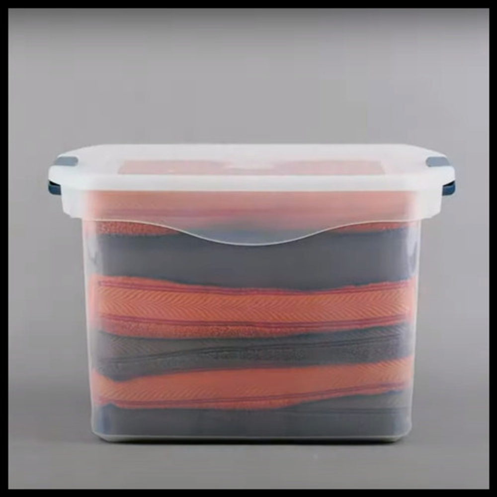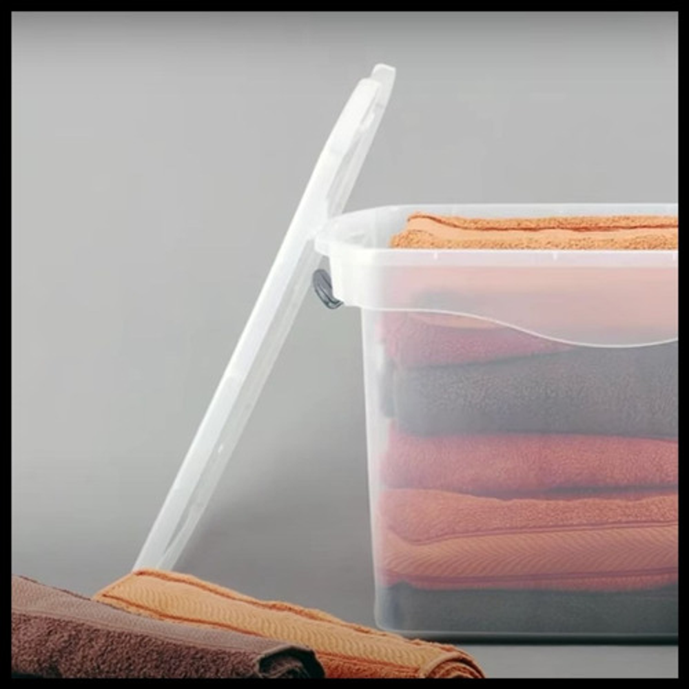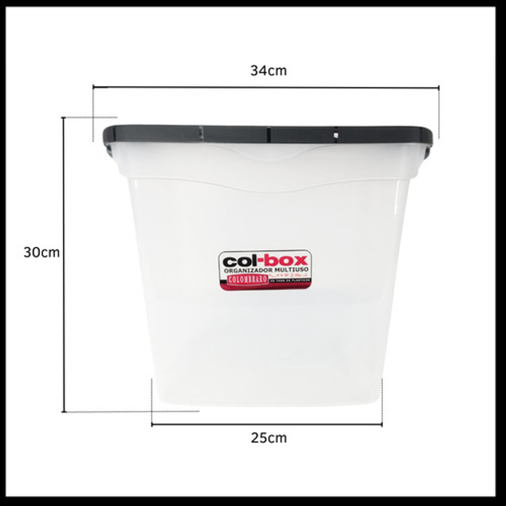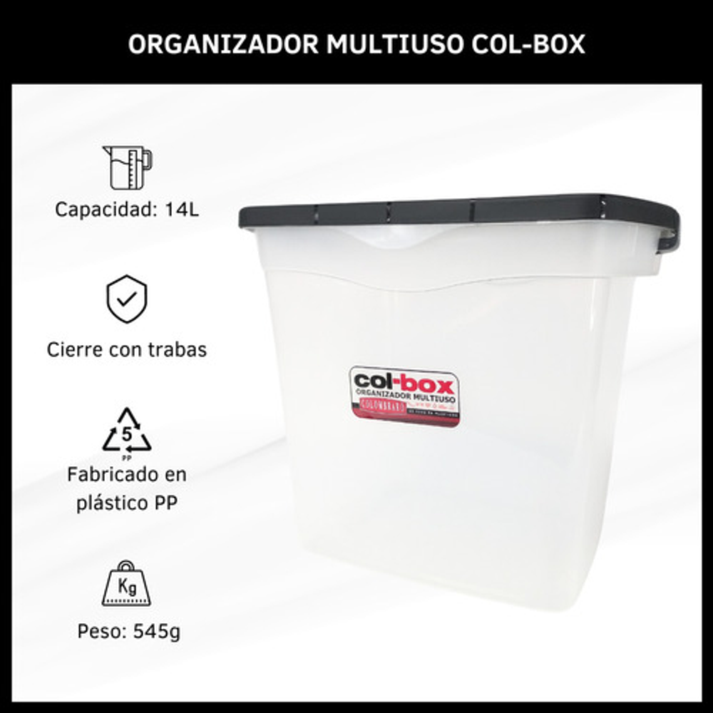 CAJA ORGANIZADORA COLOMBRARO CON UNA CAPACIDAD DE 14 LITROS. POSEE TAPA PLÁSTICA CON TRABAS LATERALES.