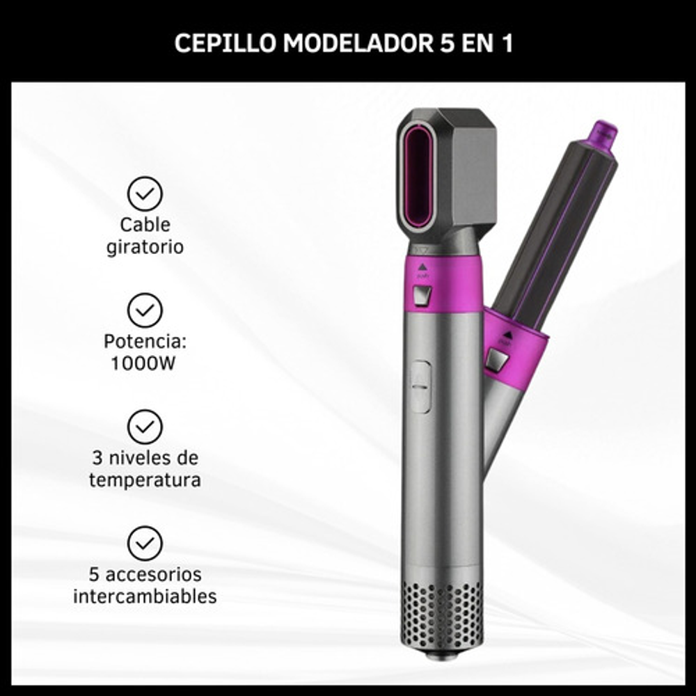 5 accesorios intercambiables, puedes utilizarlo para distintos estilos de peinado desde alisar hasta rizar. (No son giratorios)