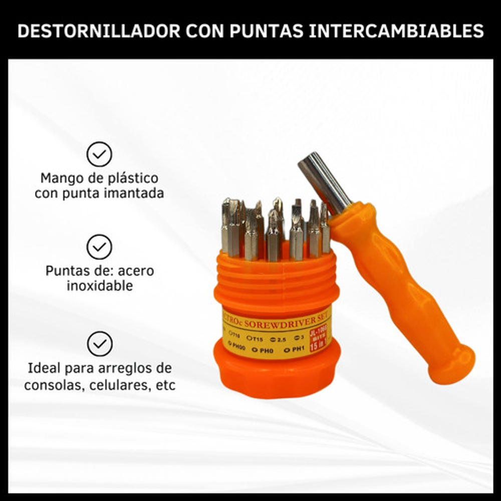 KIT DESTORNILLADOR X15 PUNTAS INTERCAMBIABLES DE REPARACIÓN