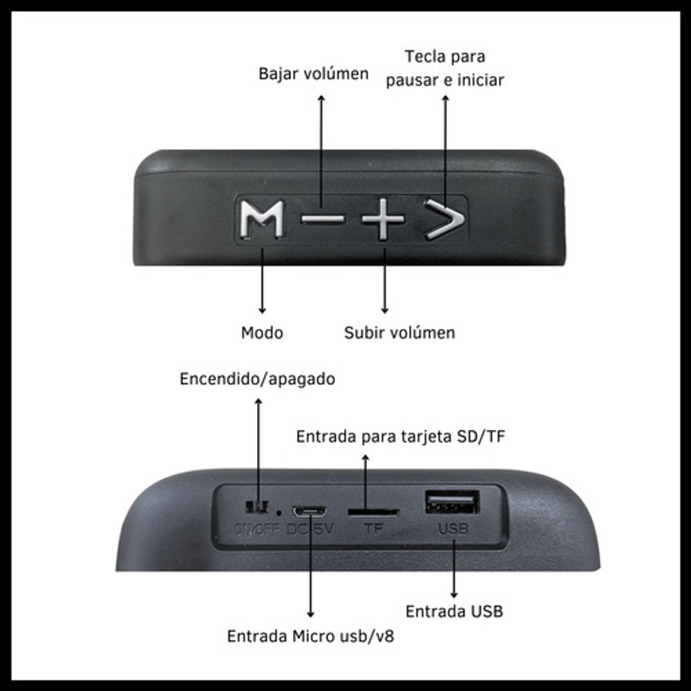 Incluye cable de carga Micro usb (10cm. de largo aproximadamente)