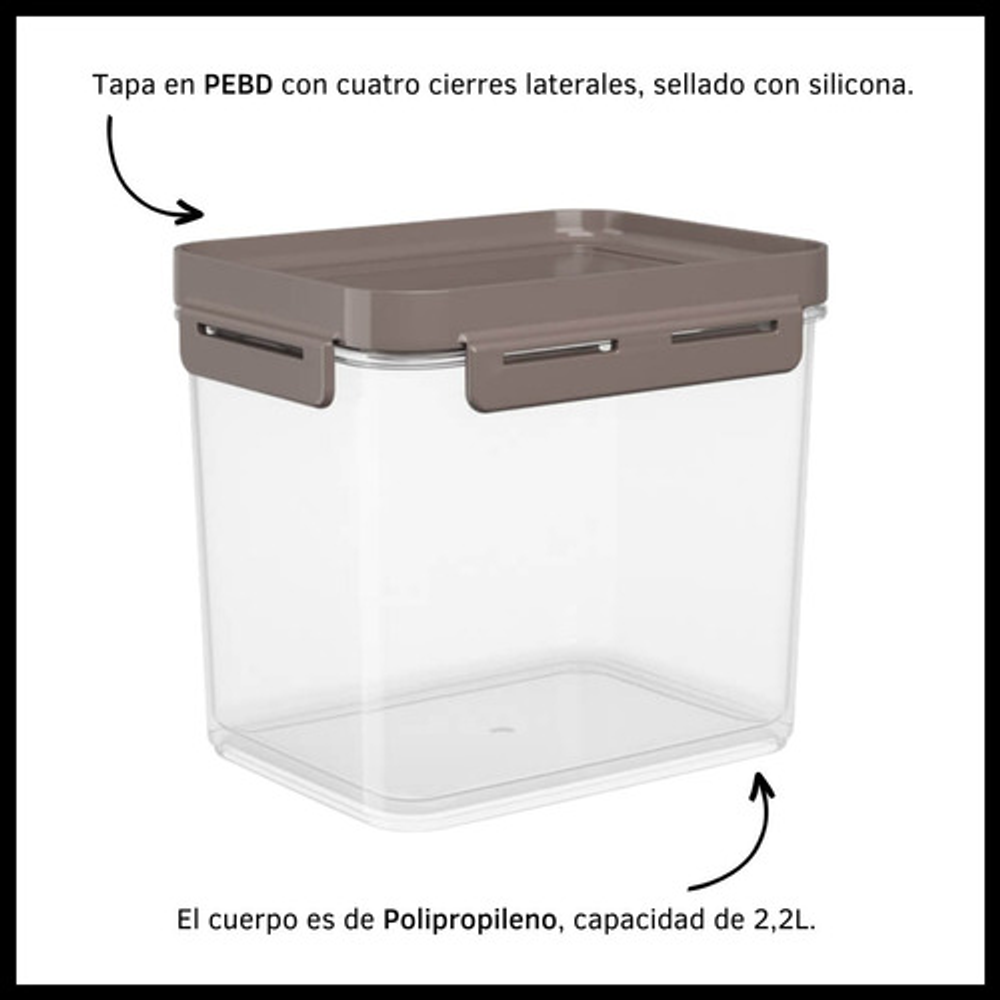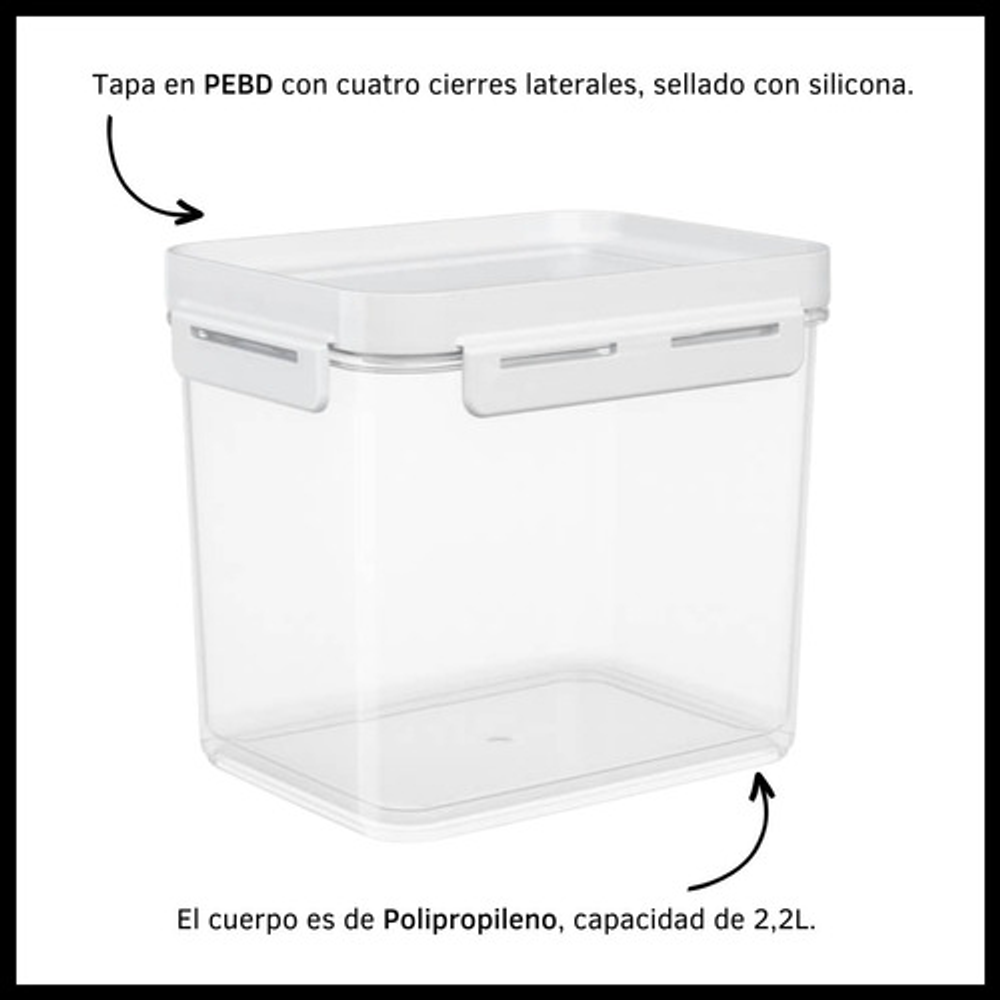 CONTENEDOR 2,2 L HERMÉTICO PLÁSTICO TRANSPARENTE