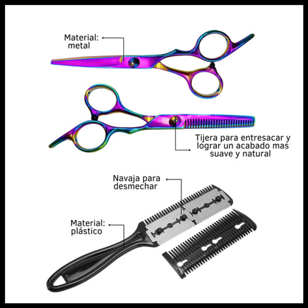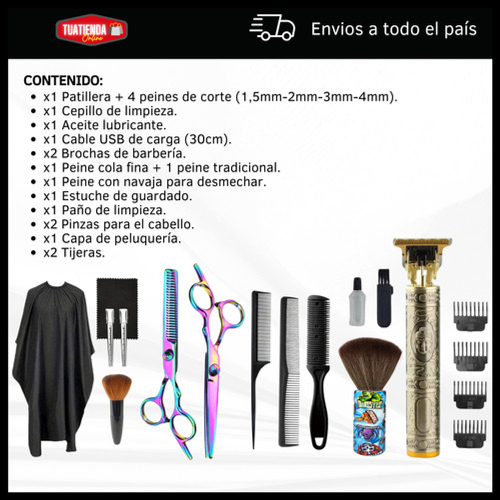 Kit ideal para peluqueros como también para barberos.