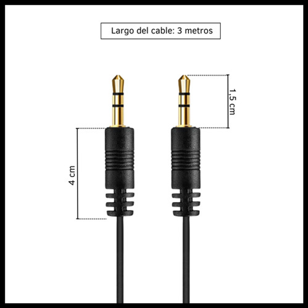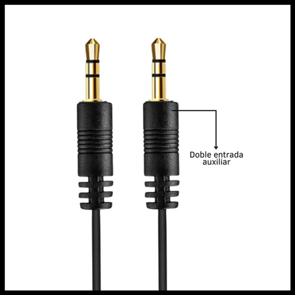 Características: -Transmite la señal de audio de un dispositivo a otro. -Cable auxiliar de 3,5 mm. -Cable engomado resistente. -Conectar dispositivos para altavoces. -Conexión confiable. -Diseñado para varios dispositivos.