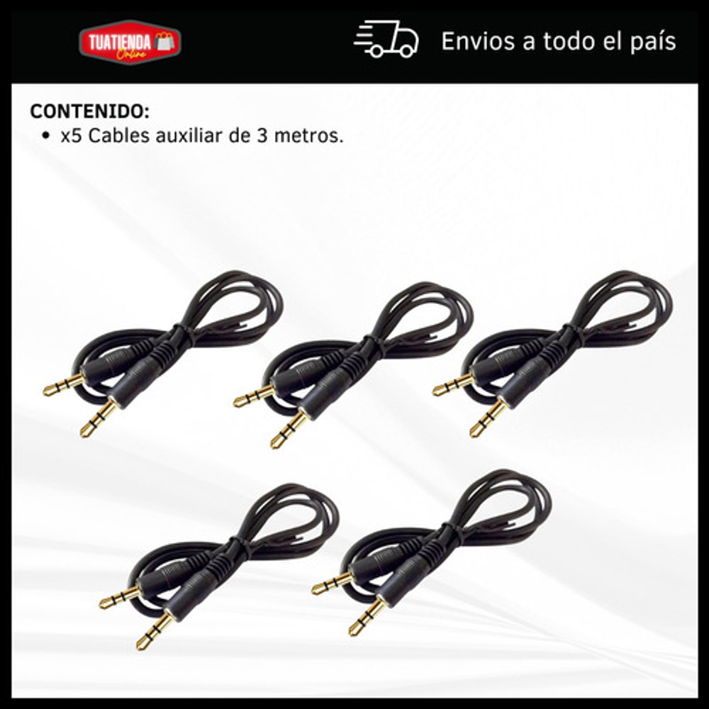 PACK x5 CABLES DE AUDIO 3,5MM DE 3 METROS