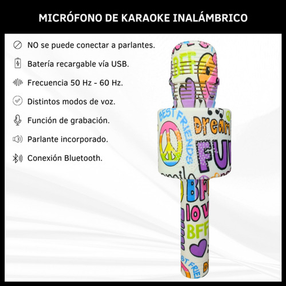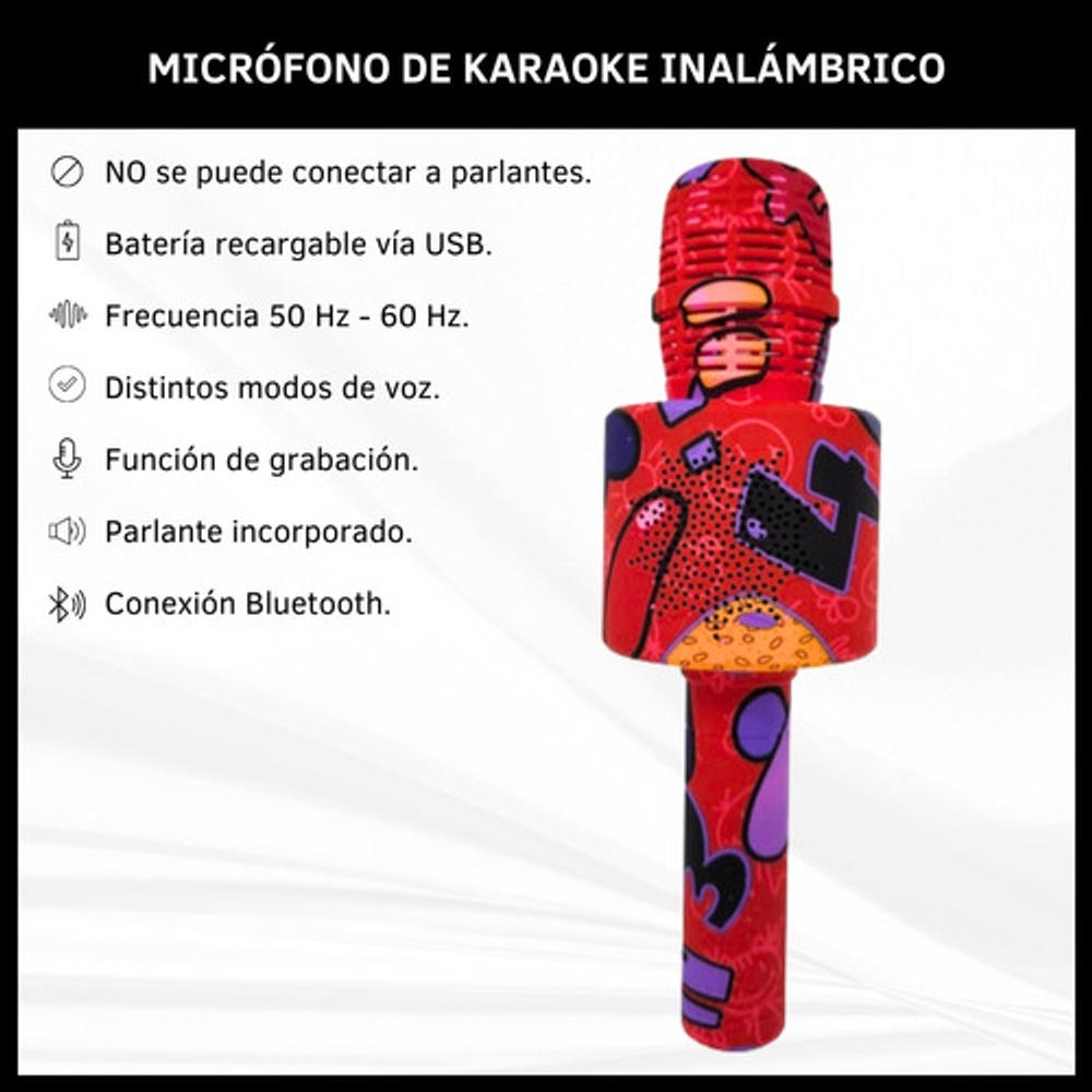MICRÓFONO PARA KARAOKE INALÁMBRICO Y RECARGABLE
