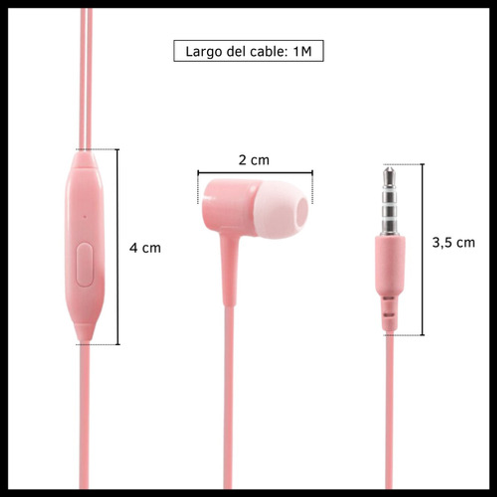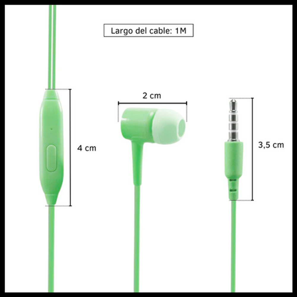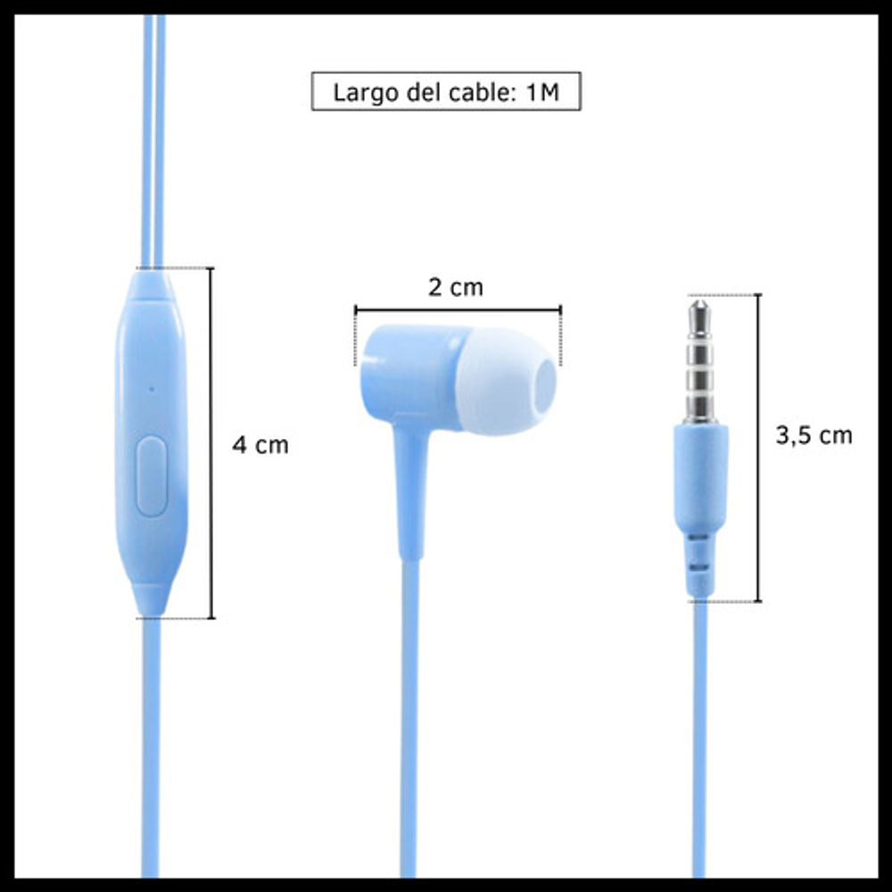 AURICULAR IN EAR CABLE DE UN METRO CON MICRÓFONO - VARIEDAD DE COLORES