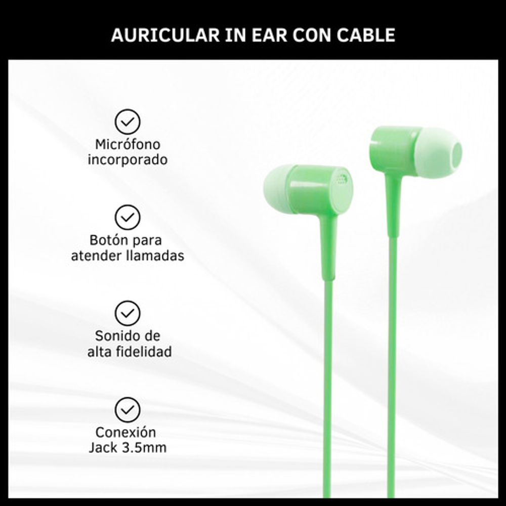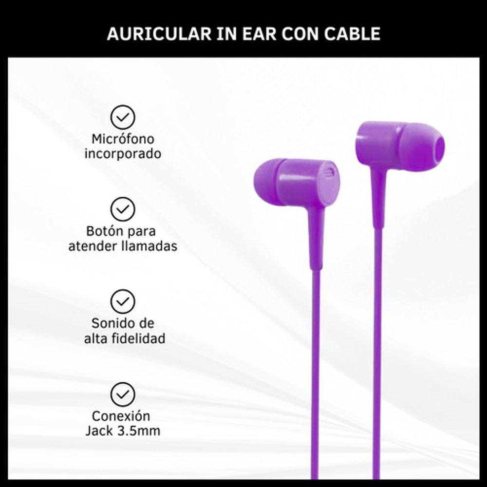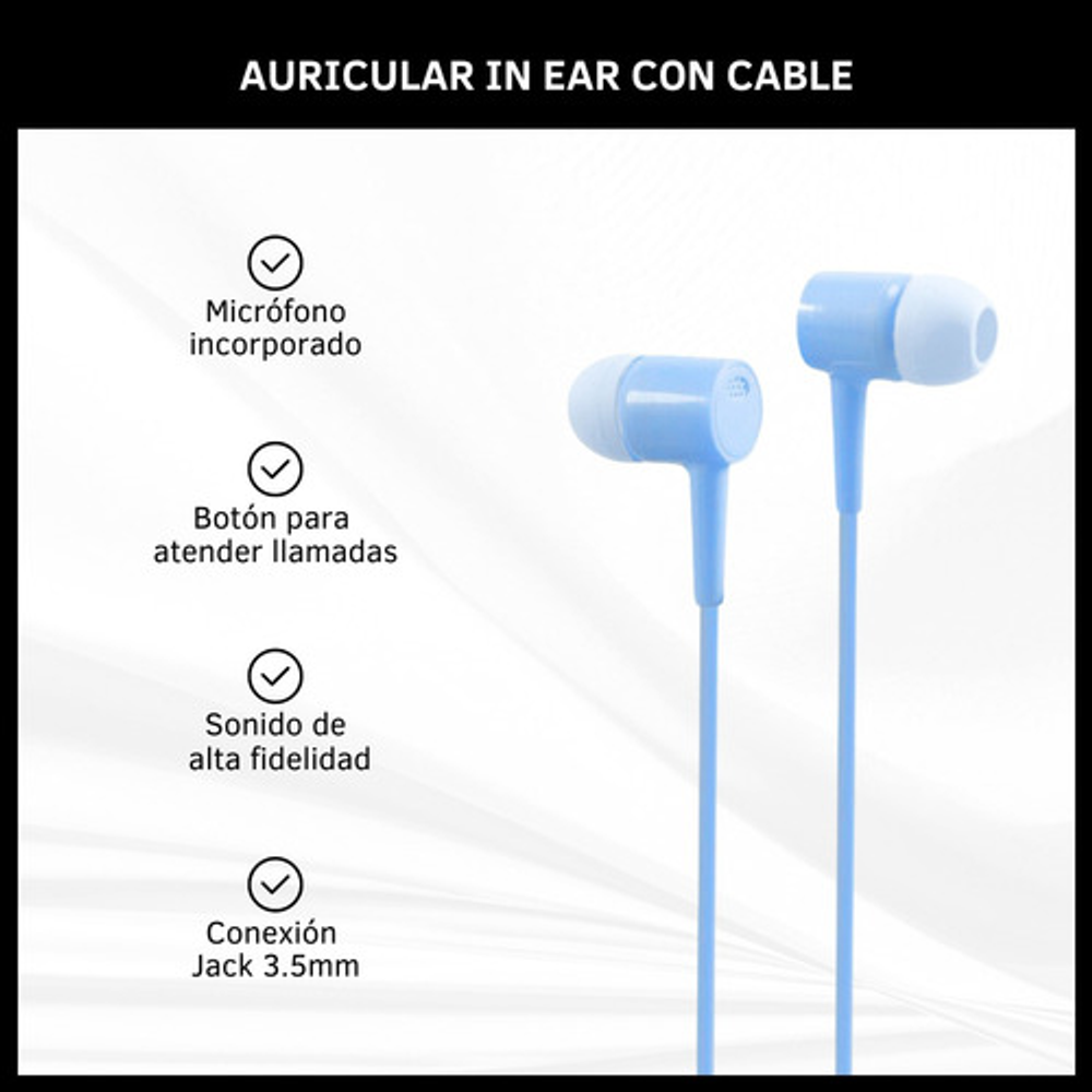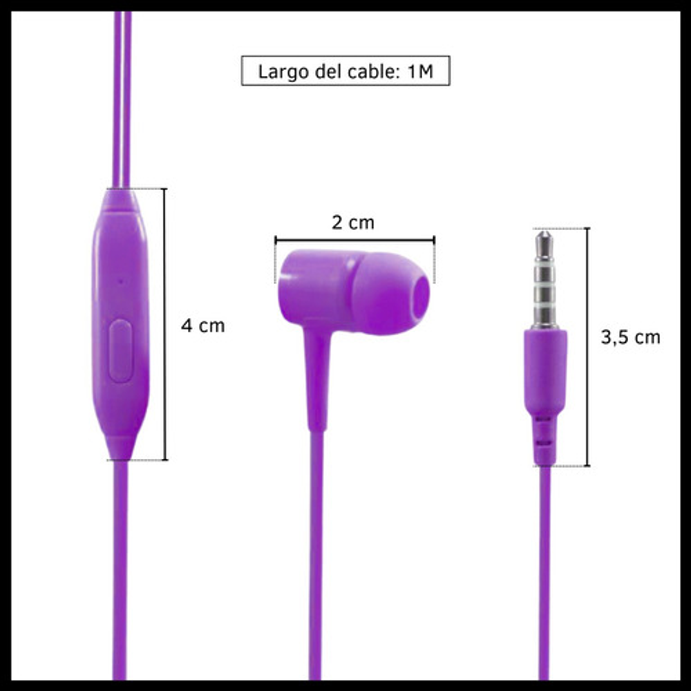 AURICULAR IN EAR CABLE DE UN METRO CON MICRÓFONO - VARIEDAD DE COLORES